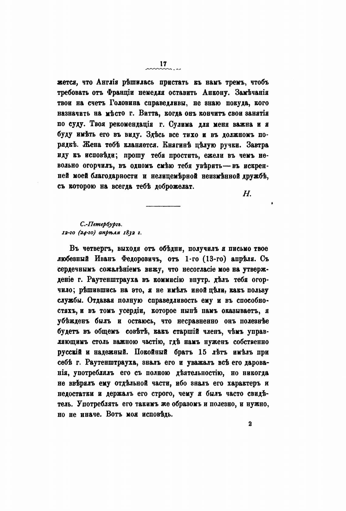 любезный Ивань Федоровичъ, отт 1-го (13-го) апр'Ьлд. Съ