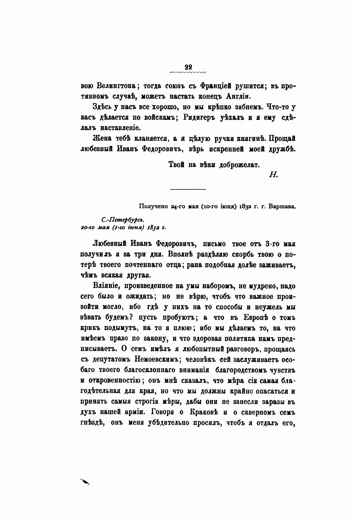 Получено ц-го мая (10-го 1833 г. г. Варшава.