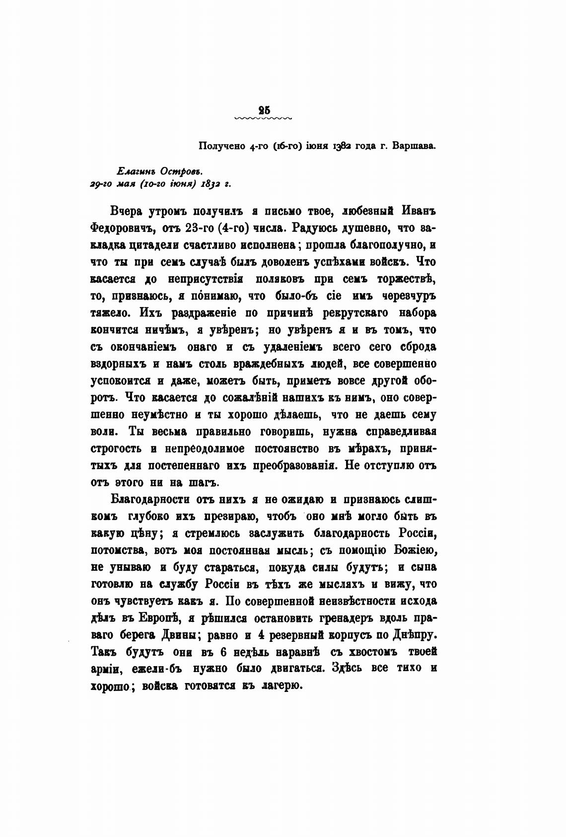 Вчера утромъ подучилъ я письмо твое, любезный Ивань