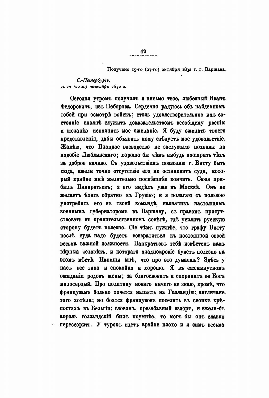 Получено 15-го (27-го) октября 1832 г. г. Варшава.
