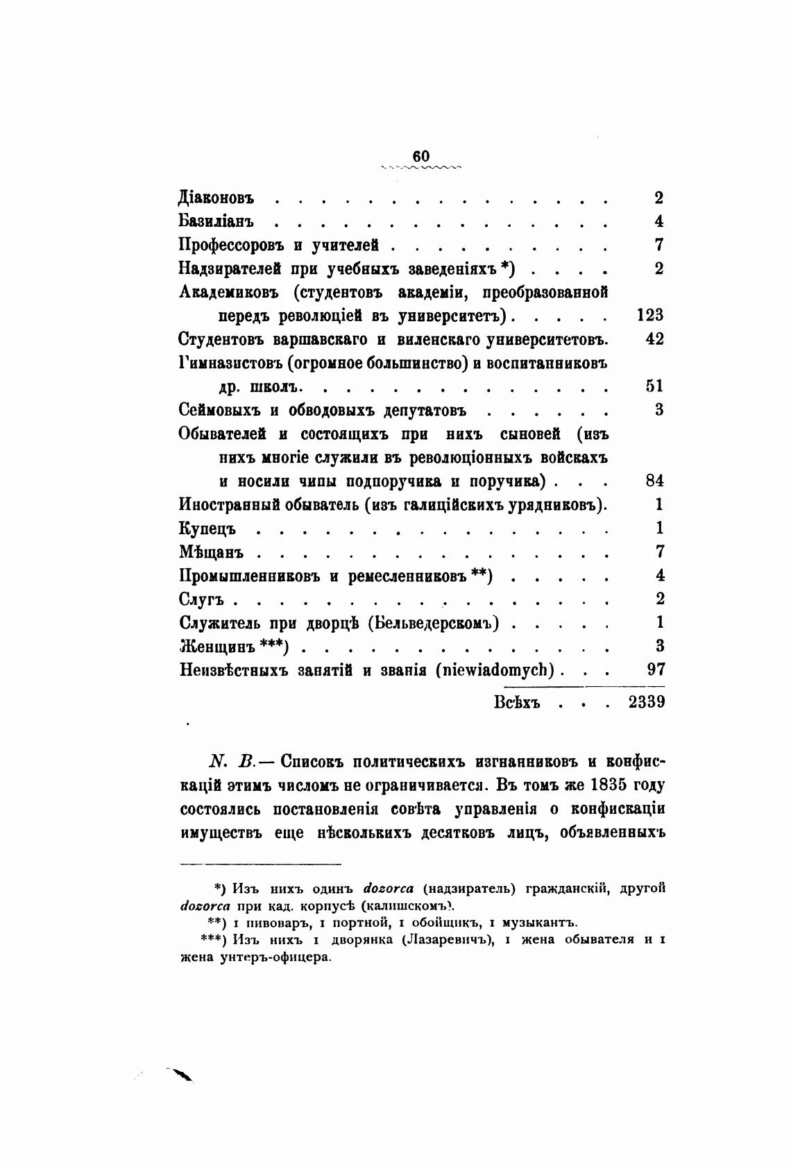 N. В.— Списокъ политичесвихъ изгнаннивовъ и вонфис-