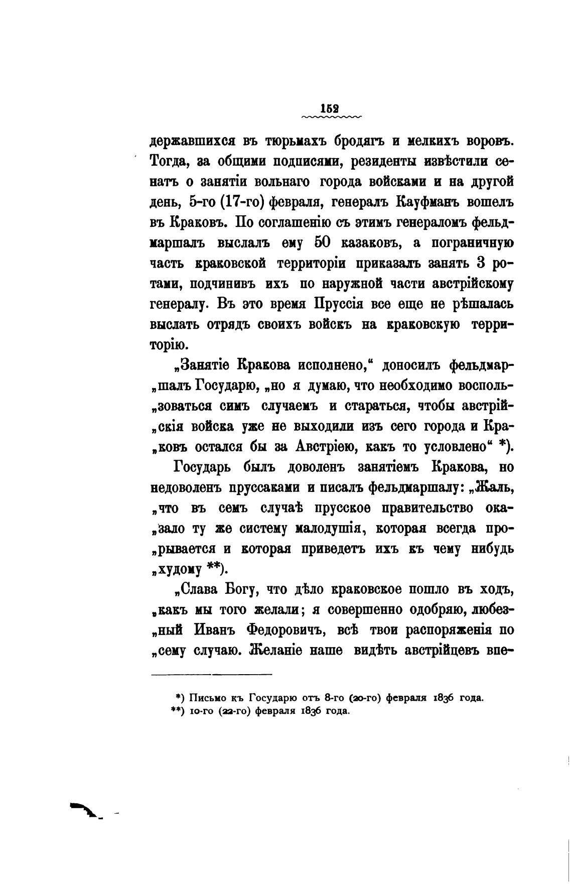 Государь быль доводенъ 3aHaTieMb Кракова, но