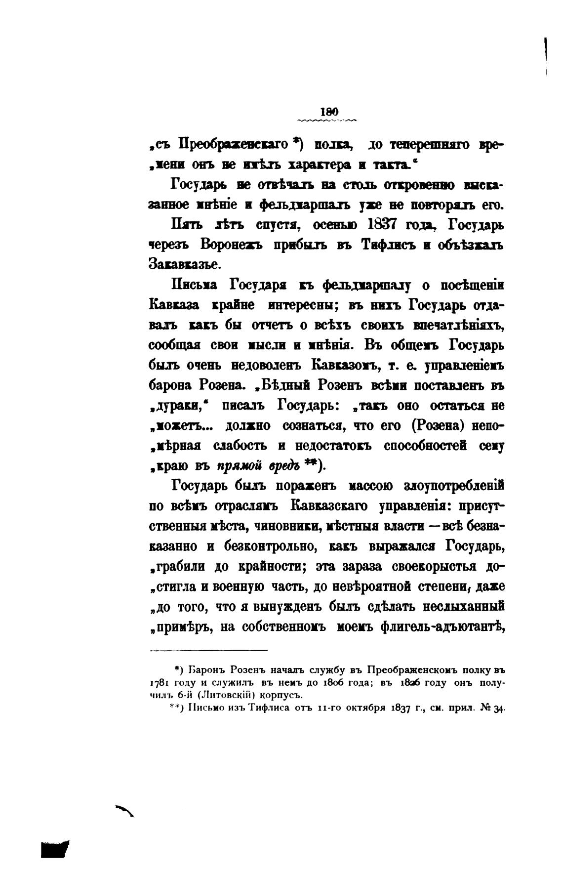 *) Баронъ Розенъ началь службу въ Преображенскомъ полку въ