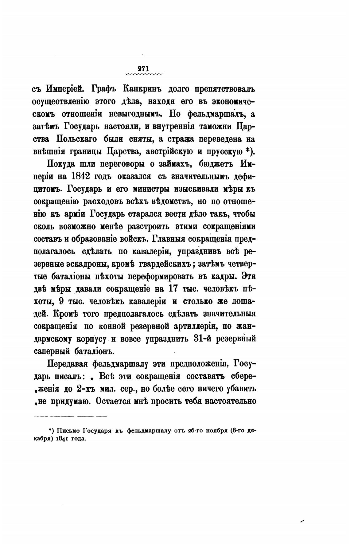 *) Письмо Государя кь фельдмаршалу отъ М-го ноября (8-го де-