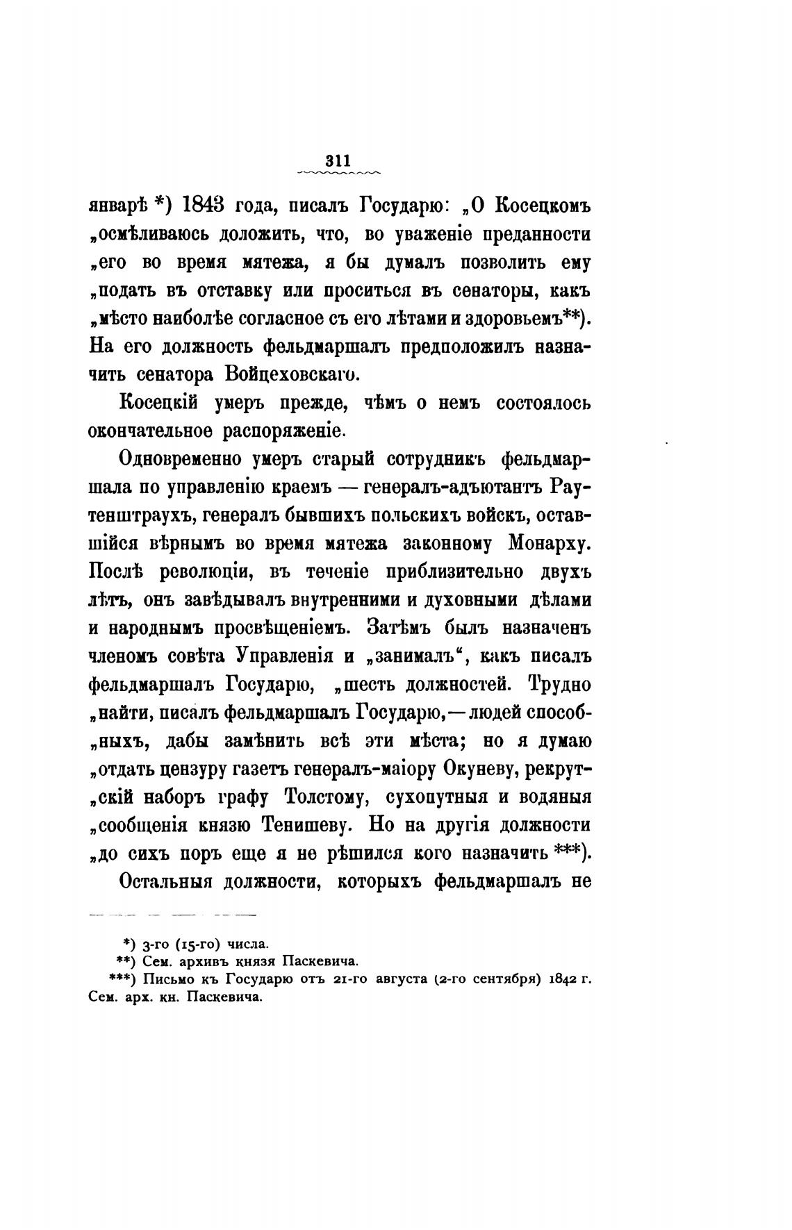 ***) Письмо кь Государю отъ 21-го августа (2-го сентября) 1842 г.