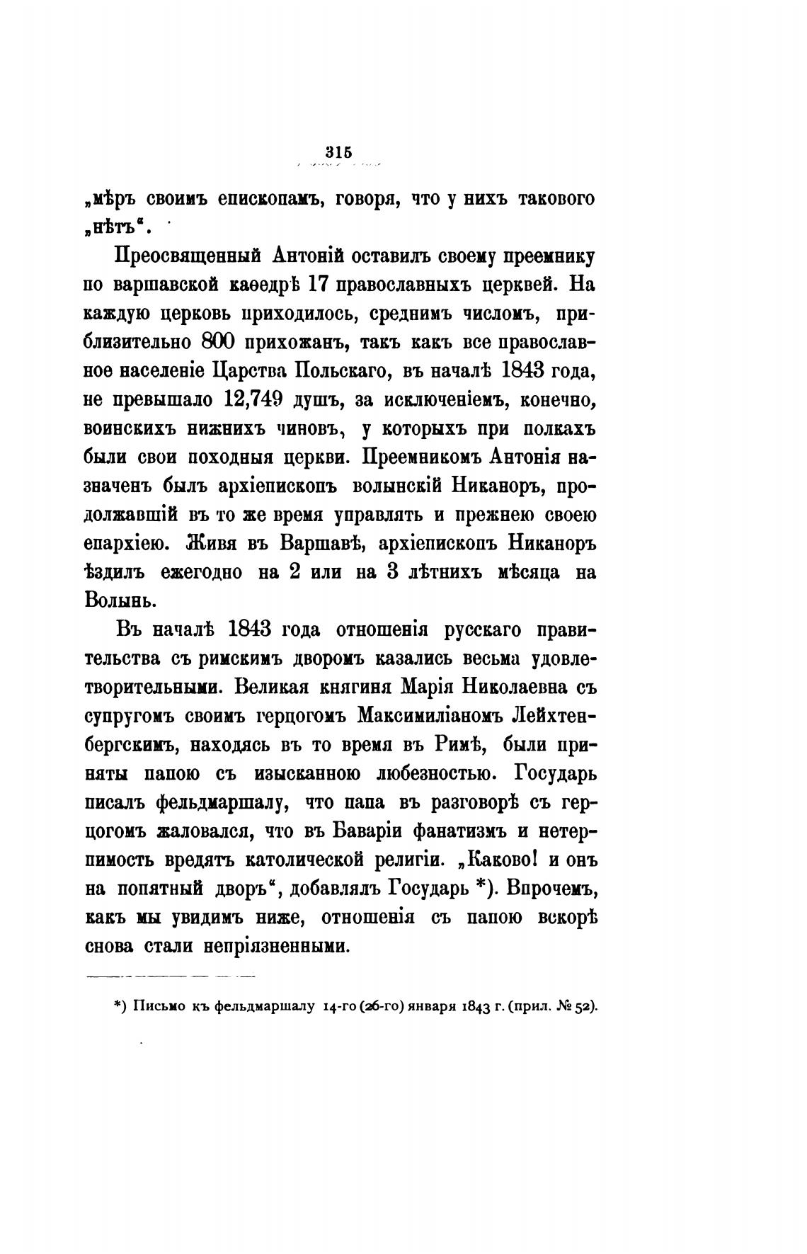 *) Письмо кь фельдмаршалу 14-го (М-го) января 1843 г. (прил. Хе 52).