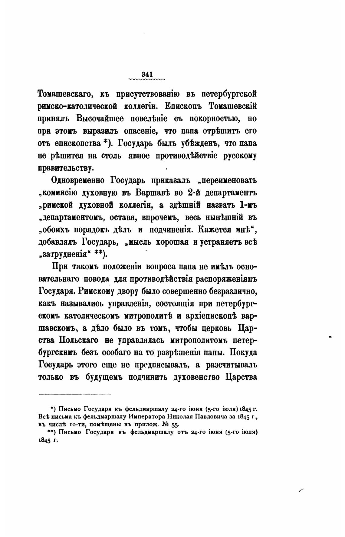 *) Письмо Государя кь фельдмаршалу ц-го (5-го 1845 г.