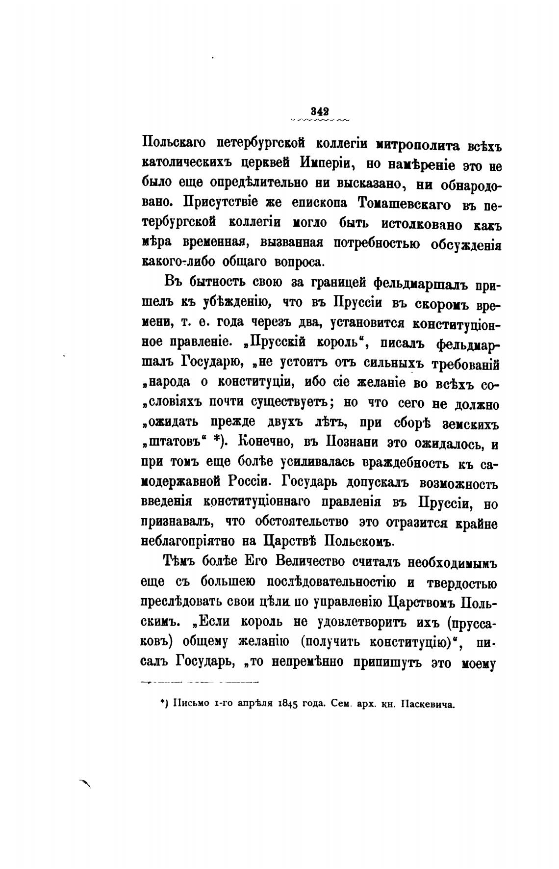 *) Письмо 1-го апр•Ьля 1845 года. Сем. арх. кн. Паскевича.