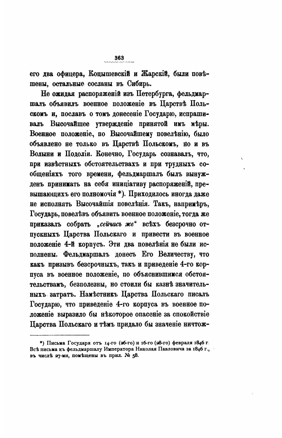 *) Письма Государя отъ 14-го (М-го) и 16-го (В-го) февраля 1846 г.