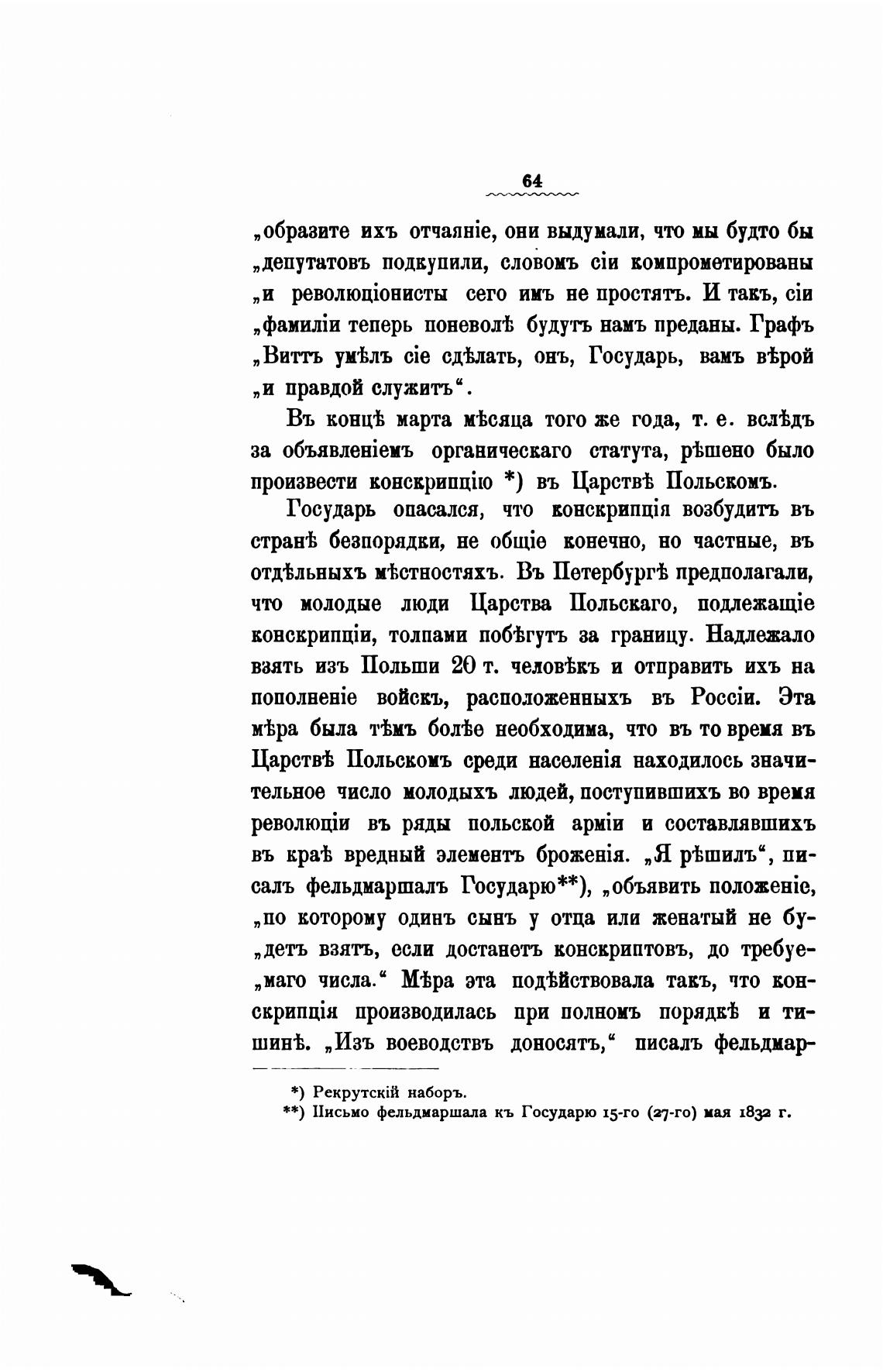 **) Письмо фельдмаршала кь Государю 15-го (27-го) мая 1832 г.