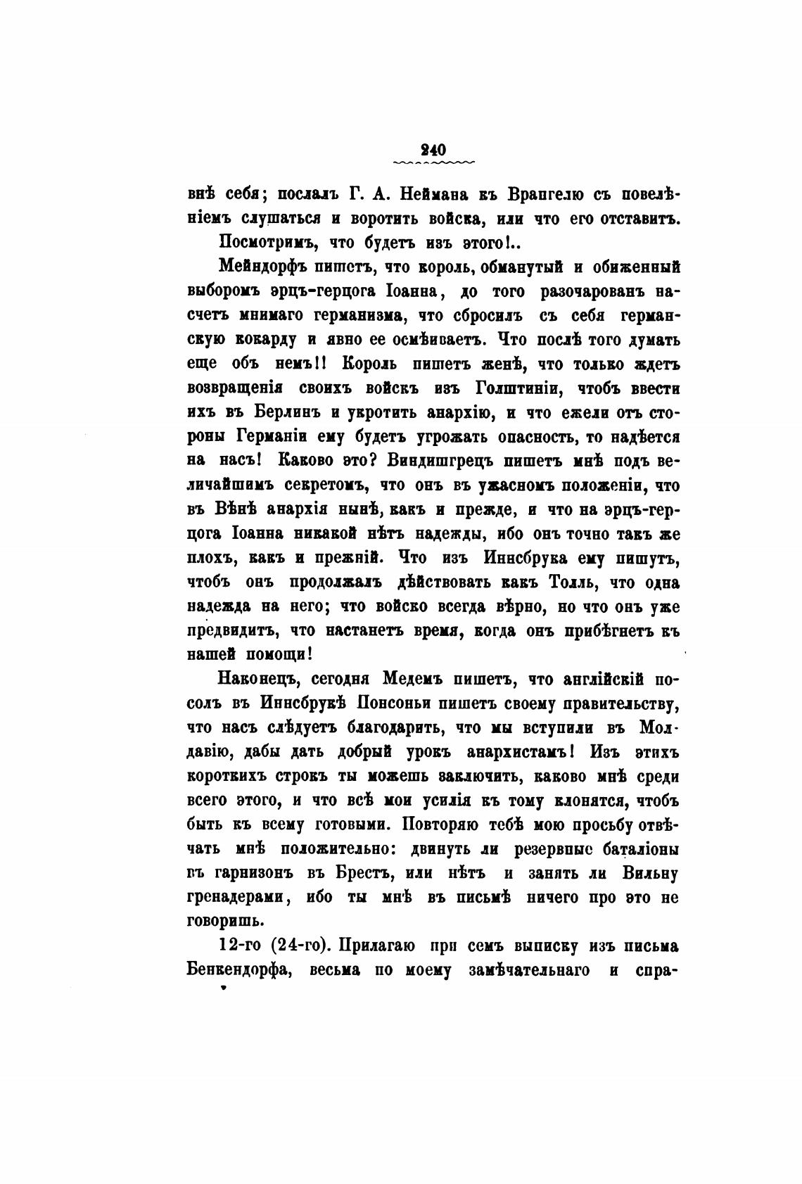 12-го (24-го). Прилагаю при семь выписву изъ письма
