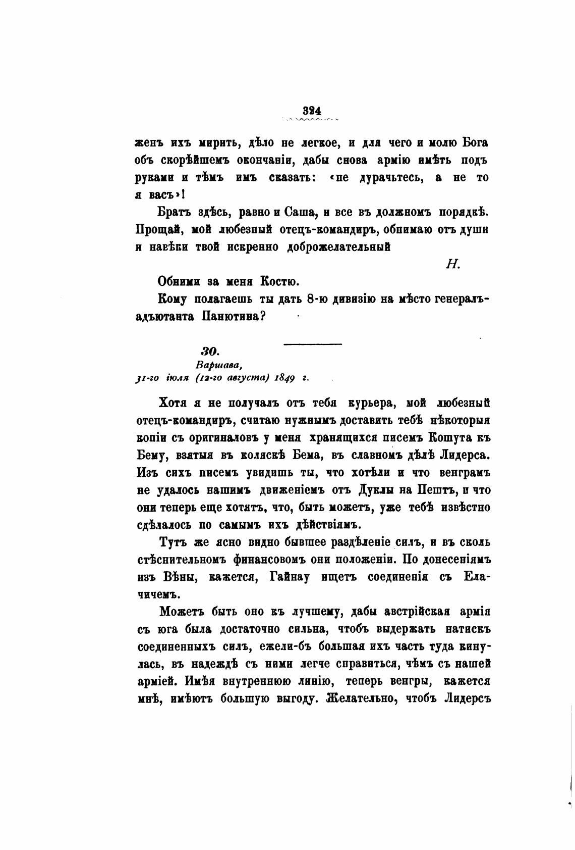Прощай, мой любезный отецъ-вомандиръ, обнимаю отъ души
