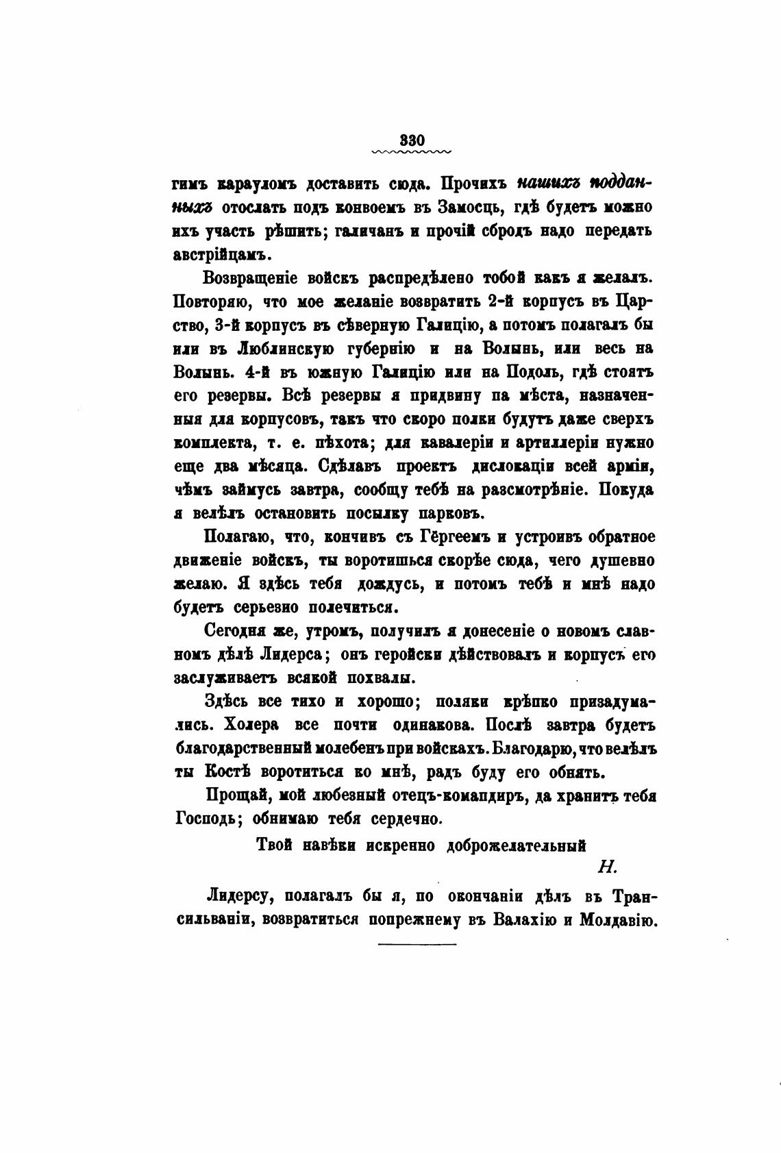 Прощай, мой любезный отецъ-воиапдиръ, да хранить теба