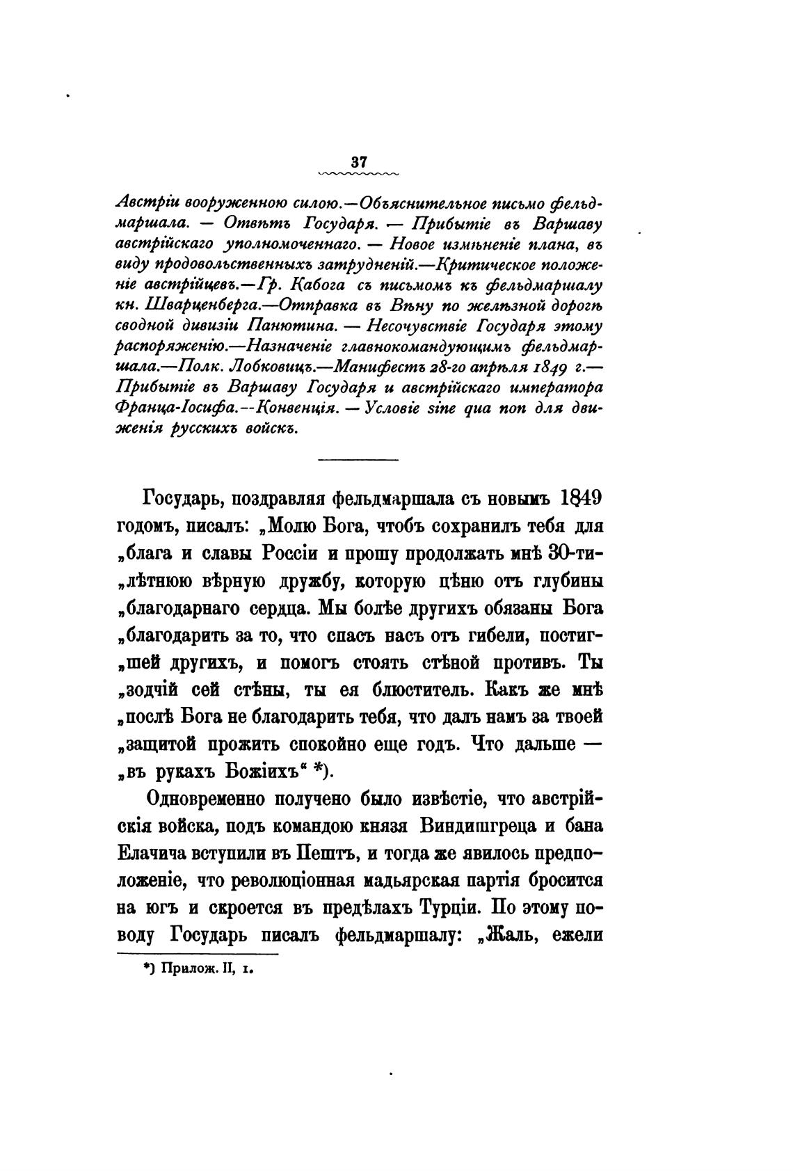 Государь, поздравляя фельдмаршала съ новымъ 1849