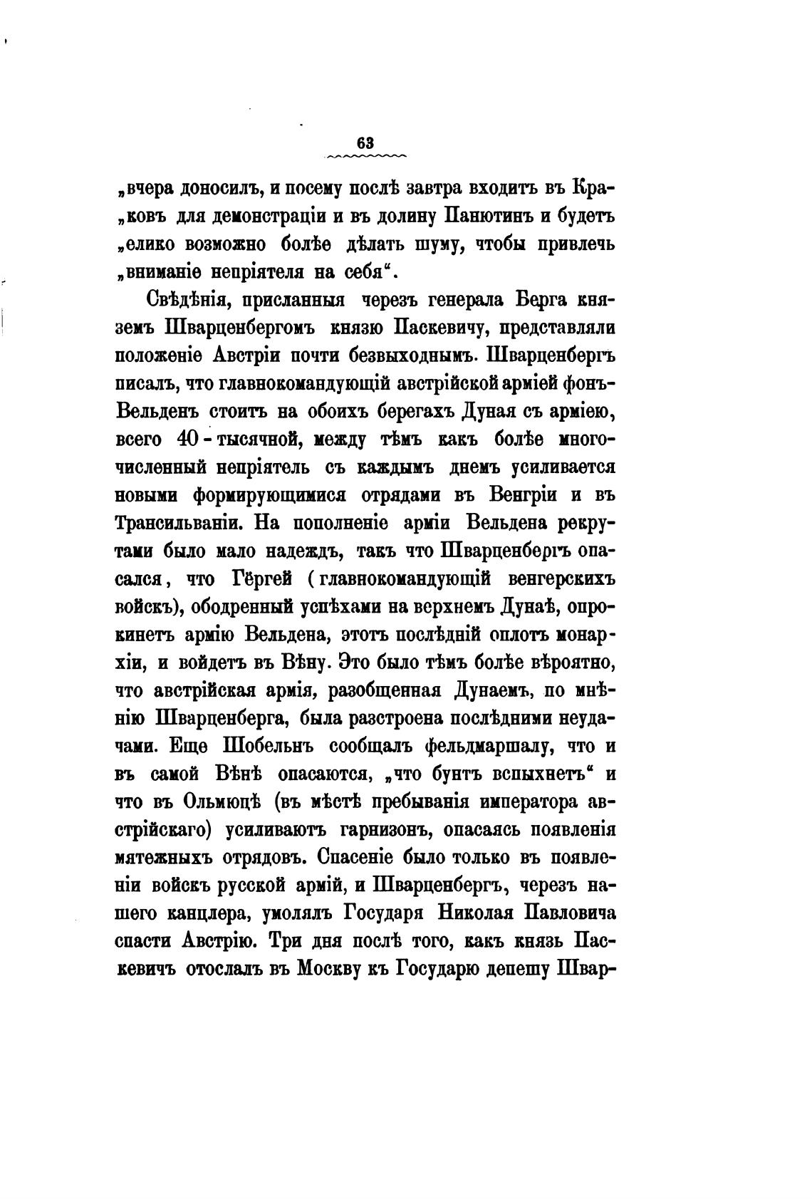 земъ Шварценбергомъ князю Паскевичу, представляли