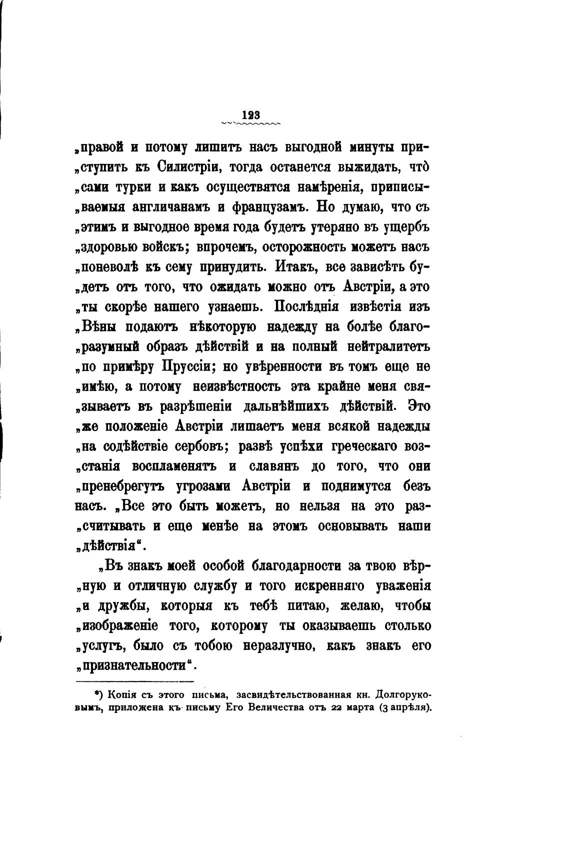 вымъ, приложена кь письму Его Величества отъ п марта (3 апр•Ьля).