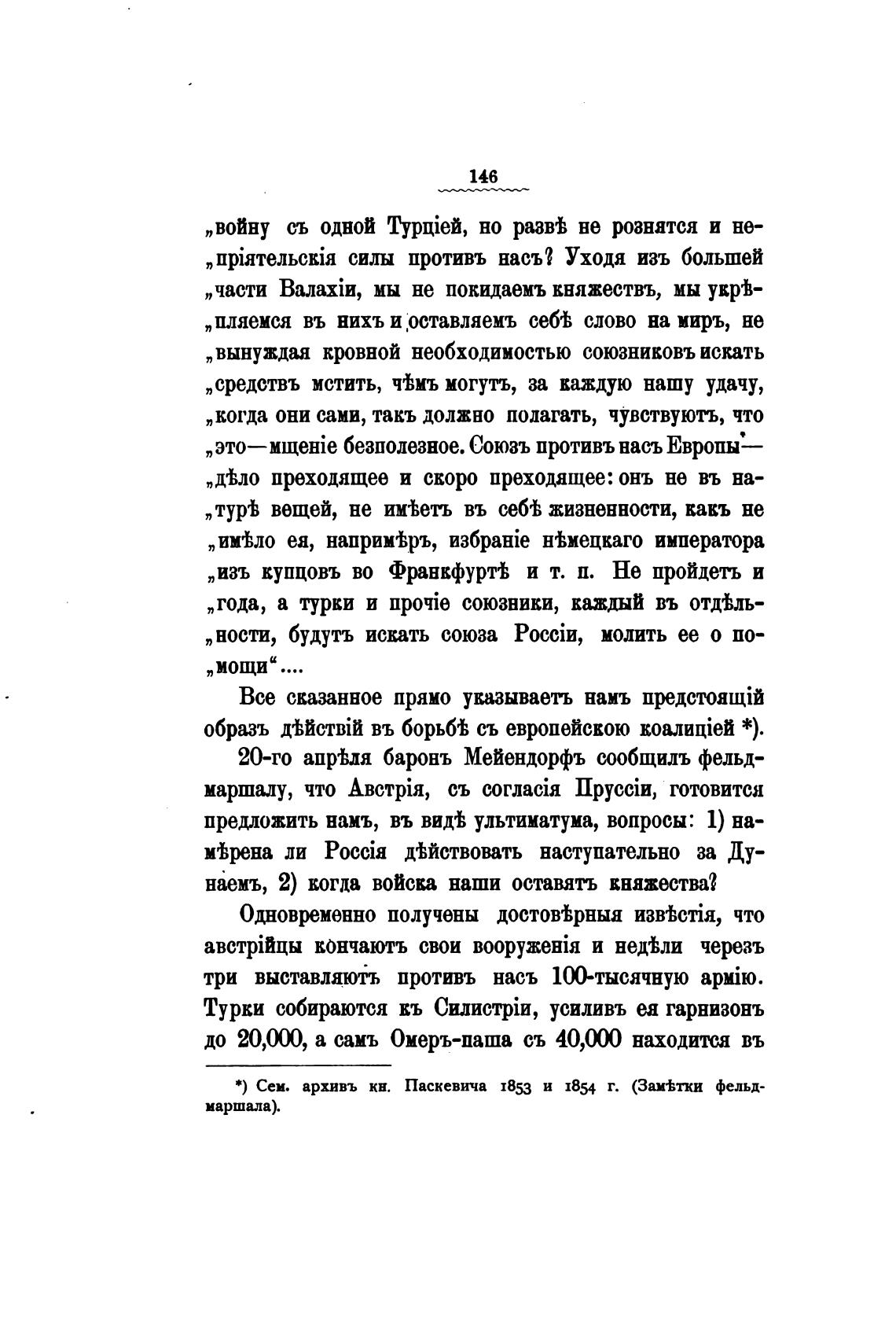 *) Сем. архивъ кн. Паскевича 1853 и 1854 г. (Зам•Ьтжи фельд-