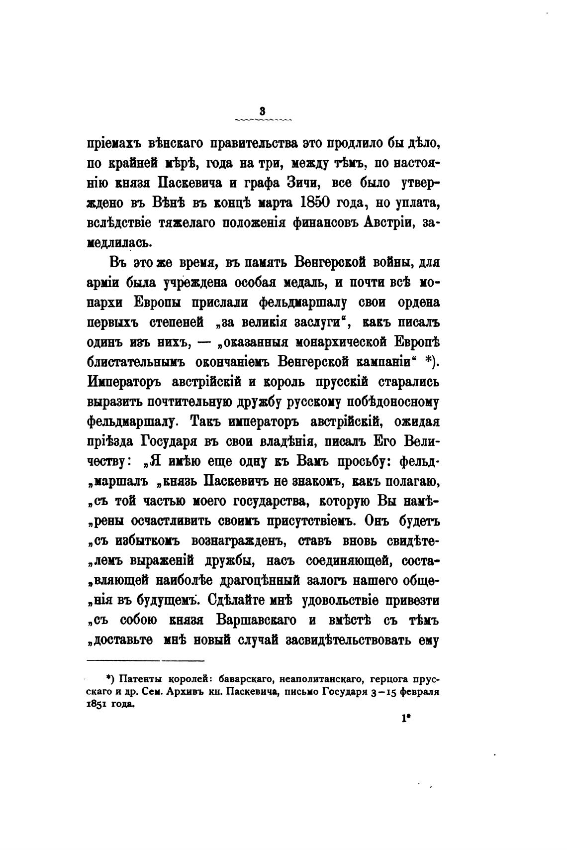 скаго и др. Сем. Архивъ кн. Паскевича, письмо Государя 3—15 февраля