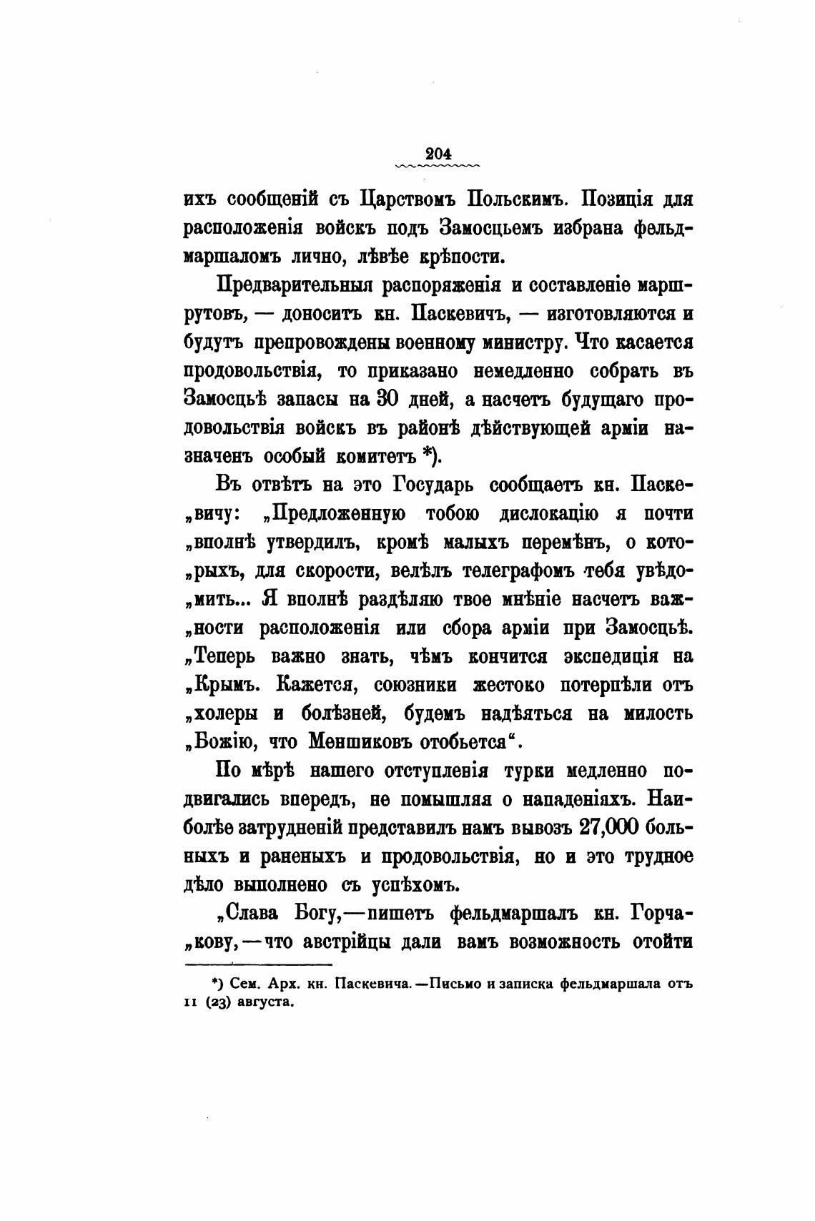 *) Сем. Арх. кн. Паскевича. —Письио и записка фельдмаршала отъ