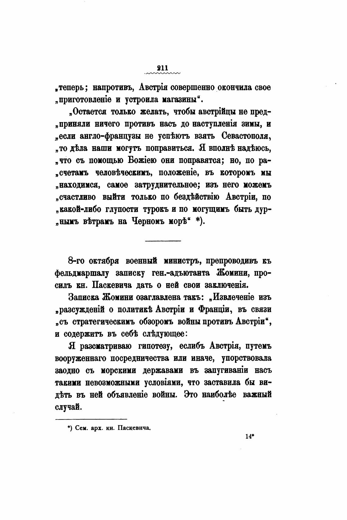 фельдмаршалу записку ген.-адъютанта Жомини, про-
