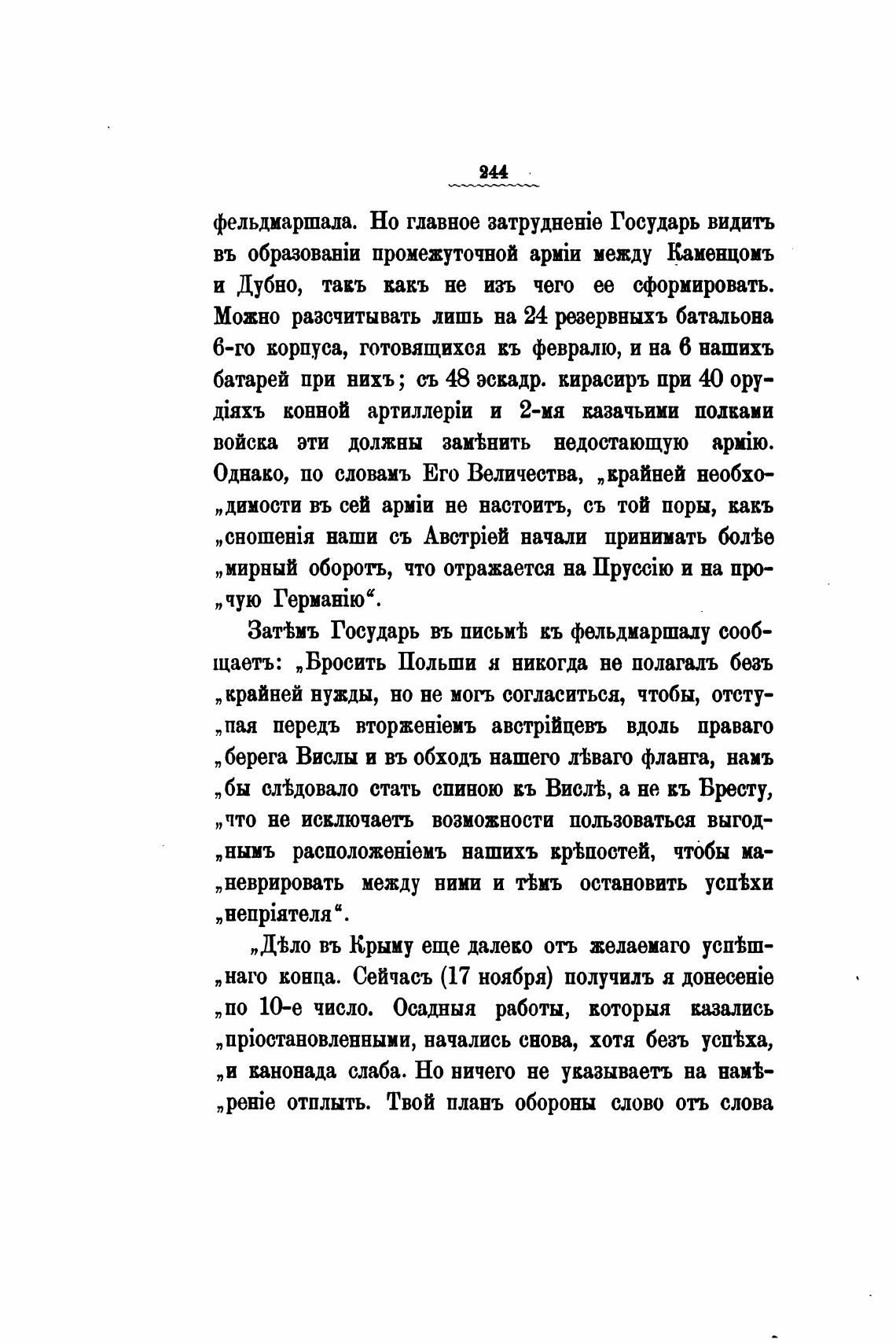 ЗатЬмъ Государь въ письмТ кь фельдмаршалу сооб-