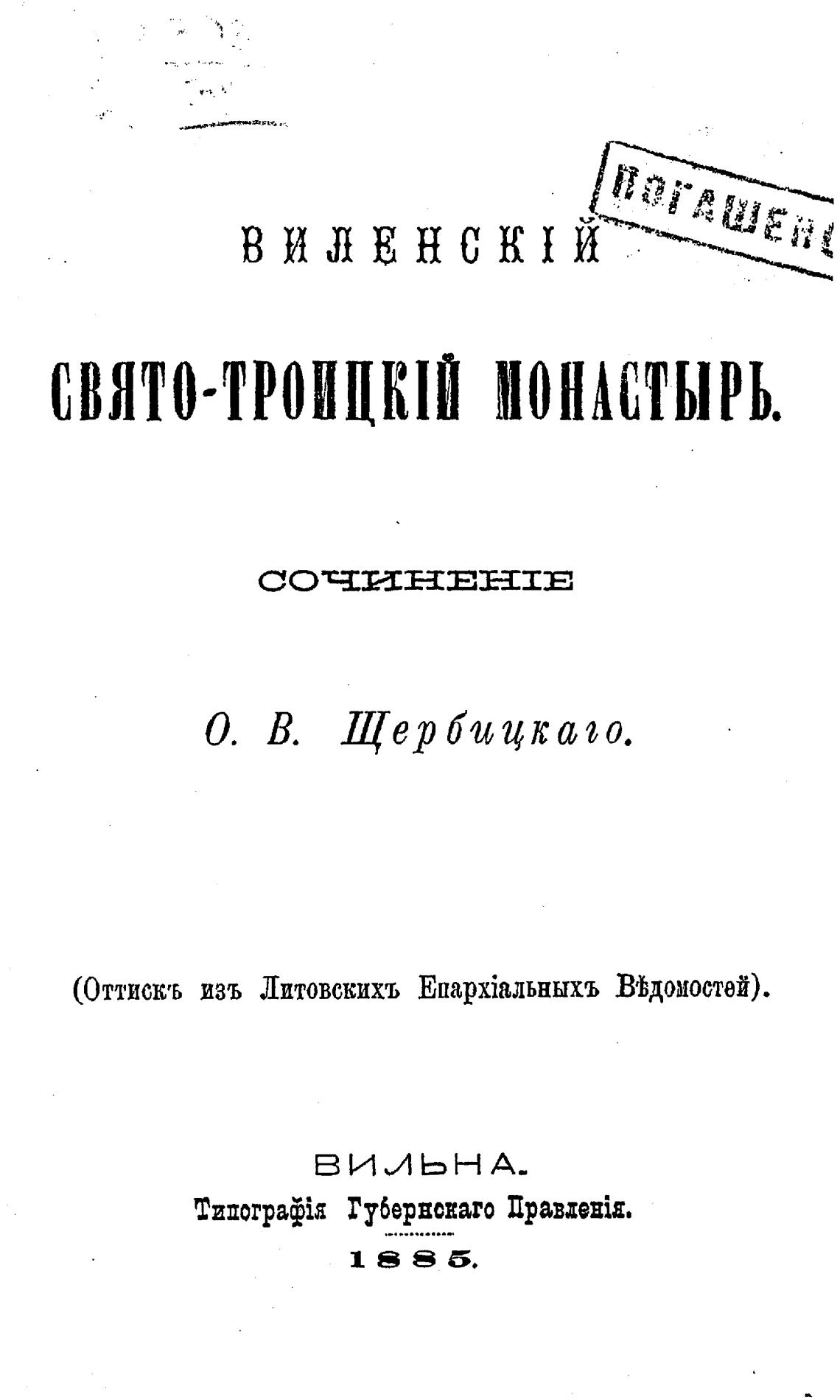 О. В. Щербицкаго.