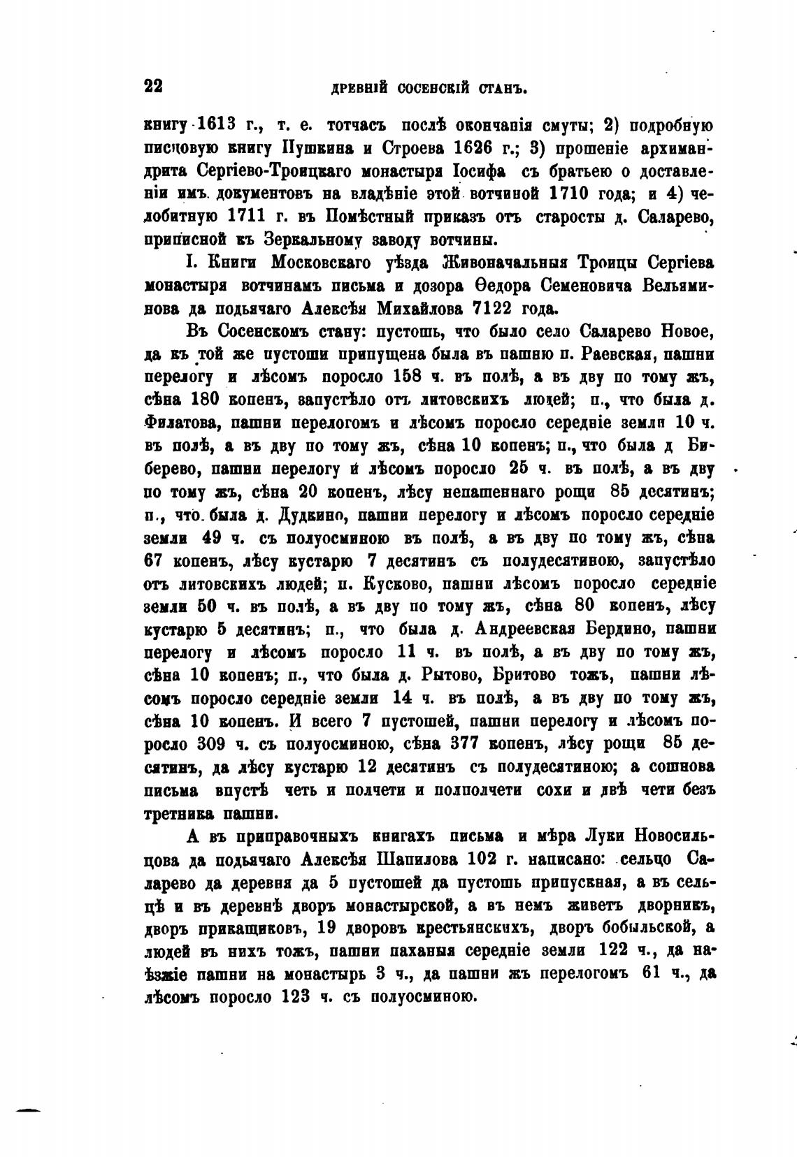 писцовую внигу Пушкина и Строева 1626 г.; З) npotneBie архиман-