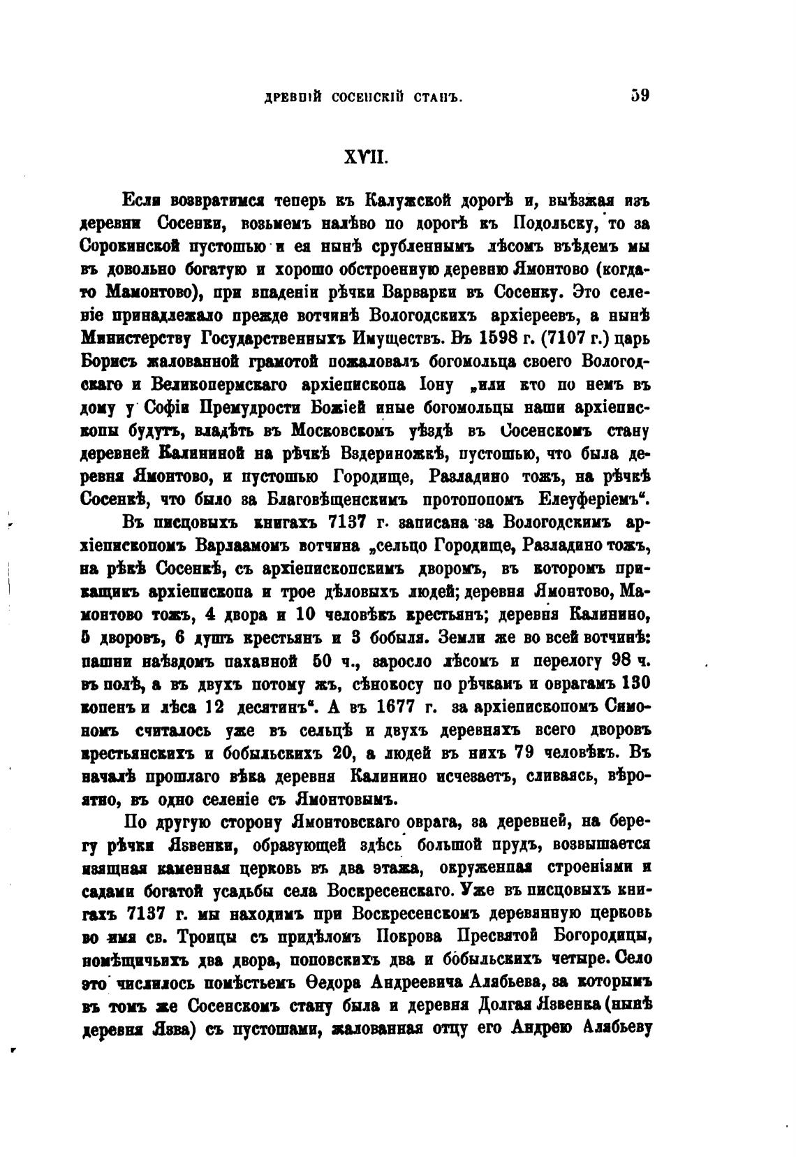то Мамонтом»), при BBMeaiH Р'ђчви Варварки въ Сосенку. Это селе-