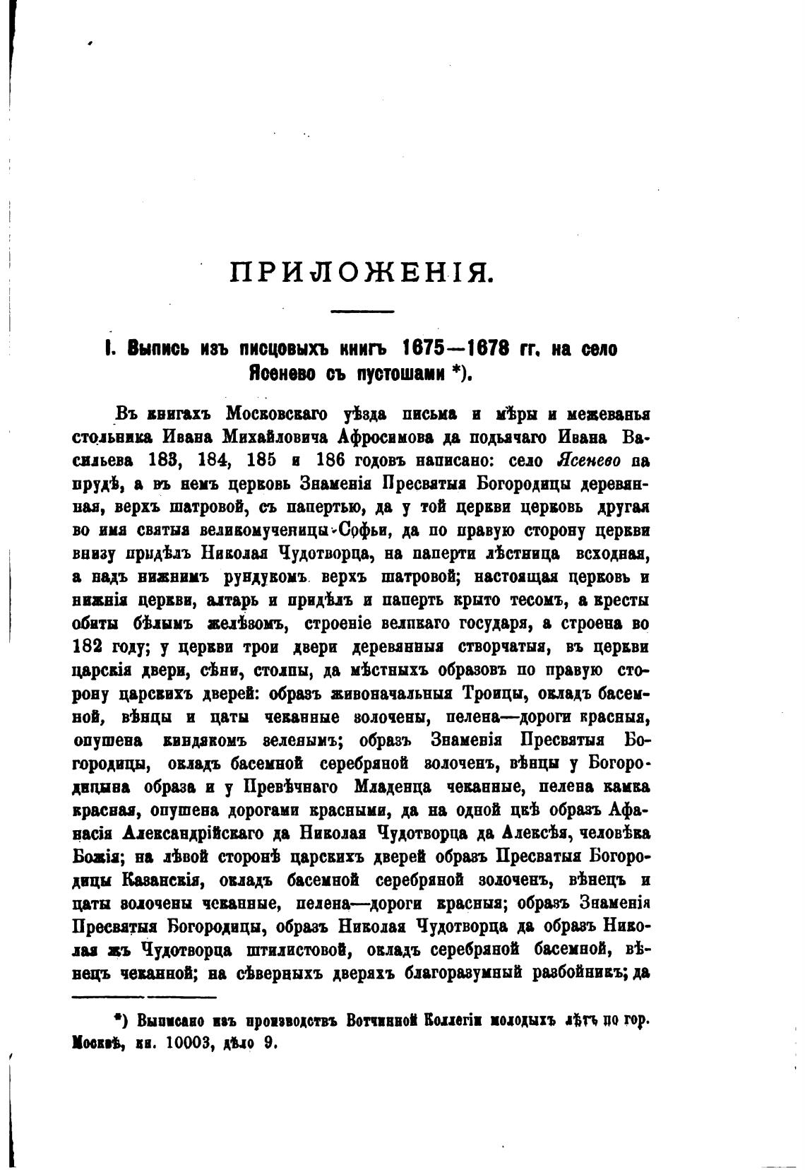 сильева 188, 184, 185 и 186 годовъ написано: село Ясенево ва