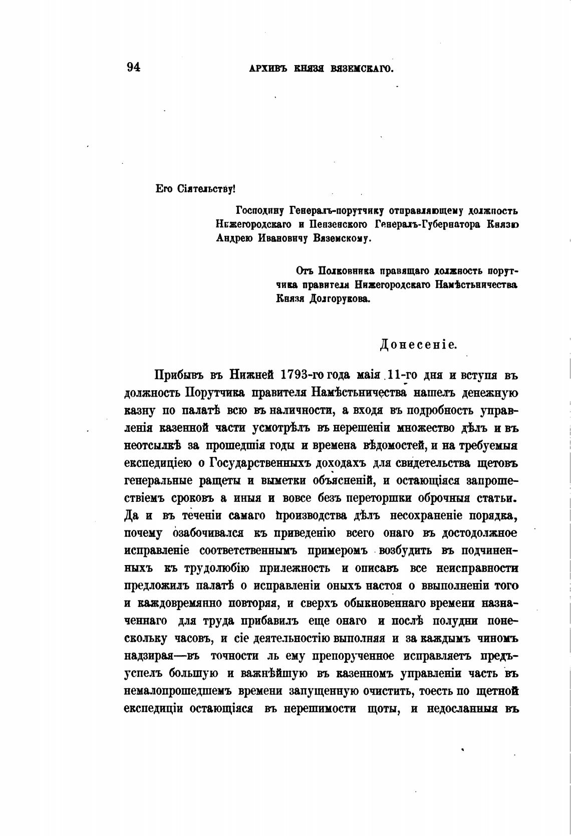 АРХИВЪ КНЯЗЯ ВЯЗЕМСКАГО.