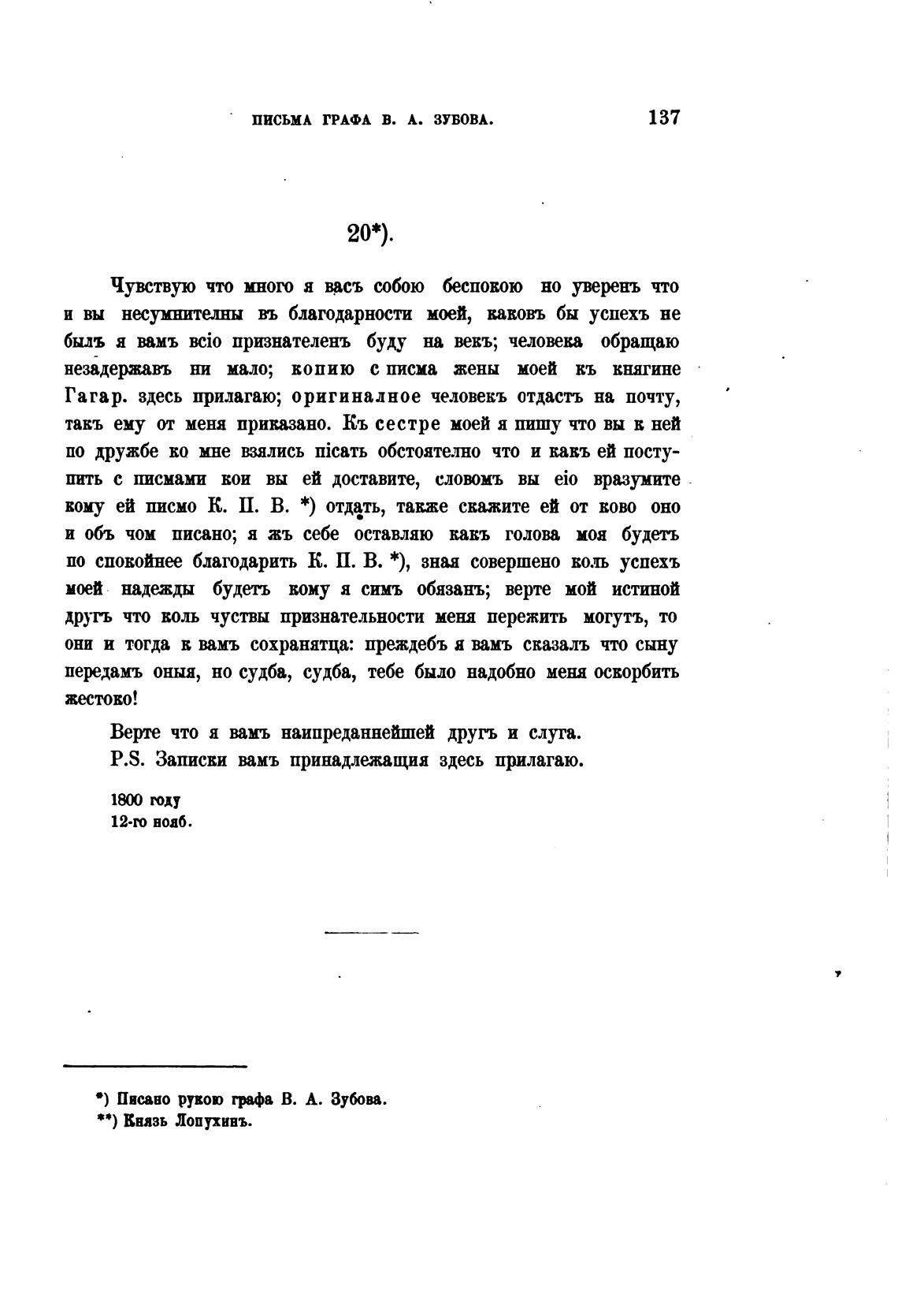 • ) Пис.ано рукою грфа В. А. Зубова.