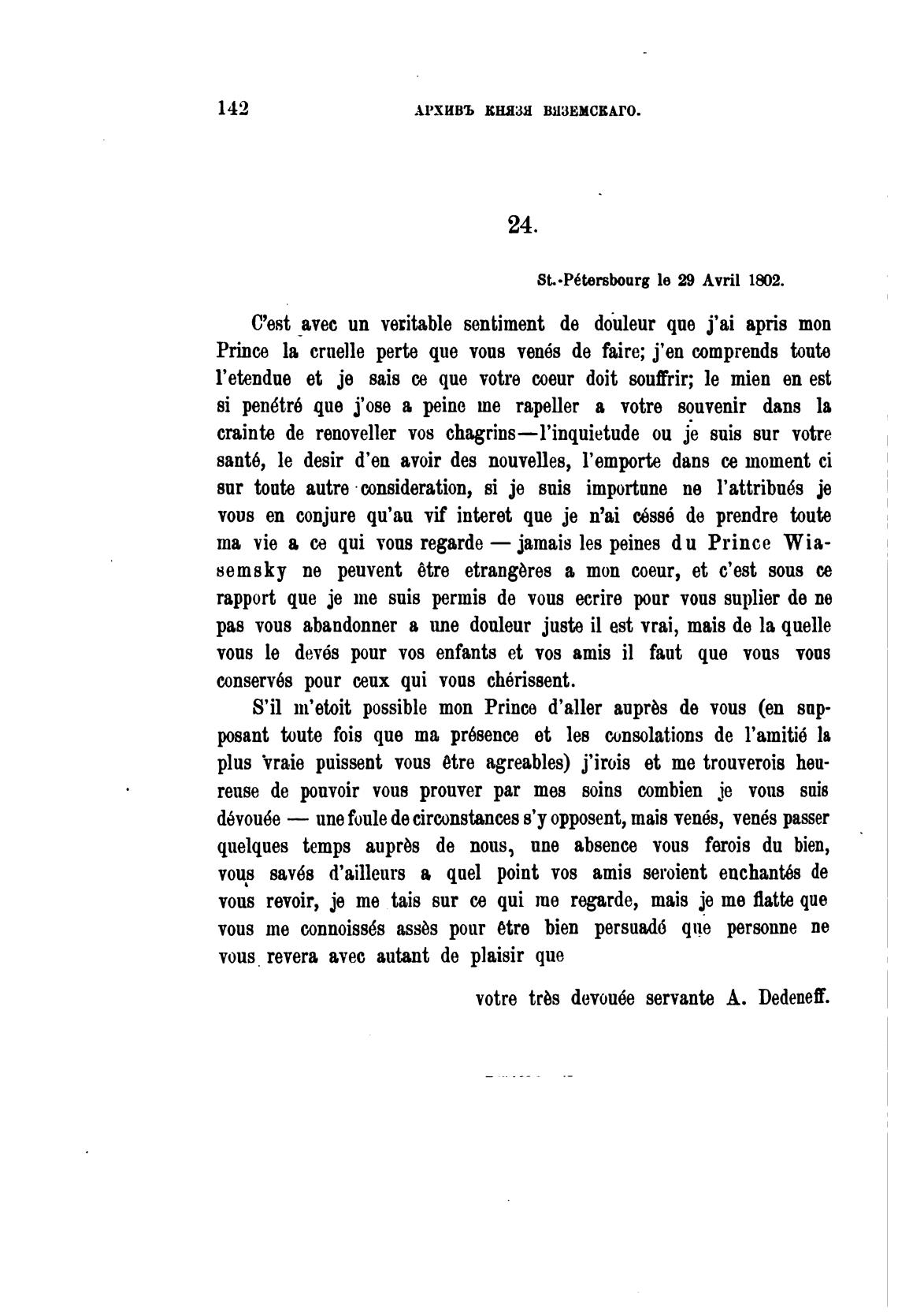 votre trbs devou6e servante А. Dedenef.