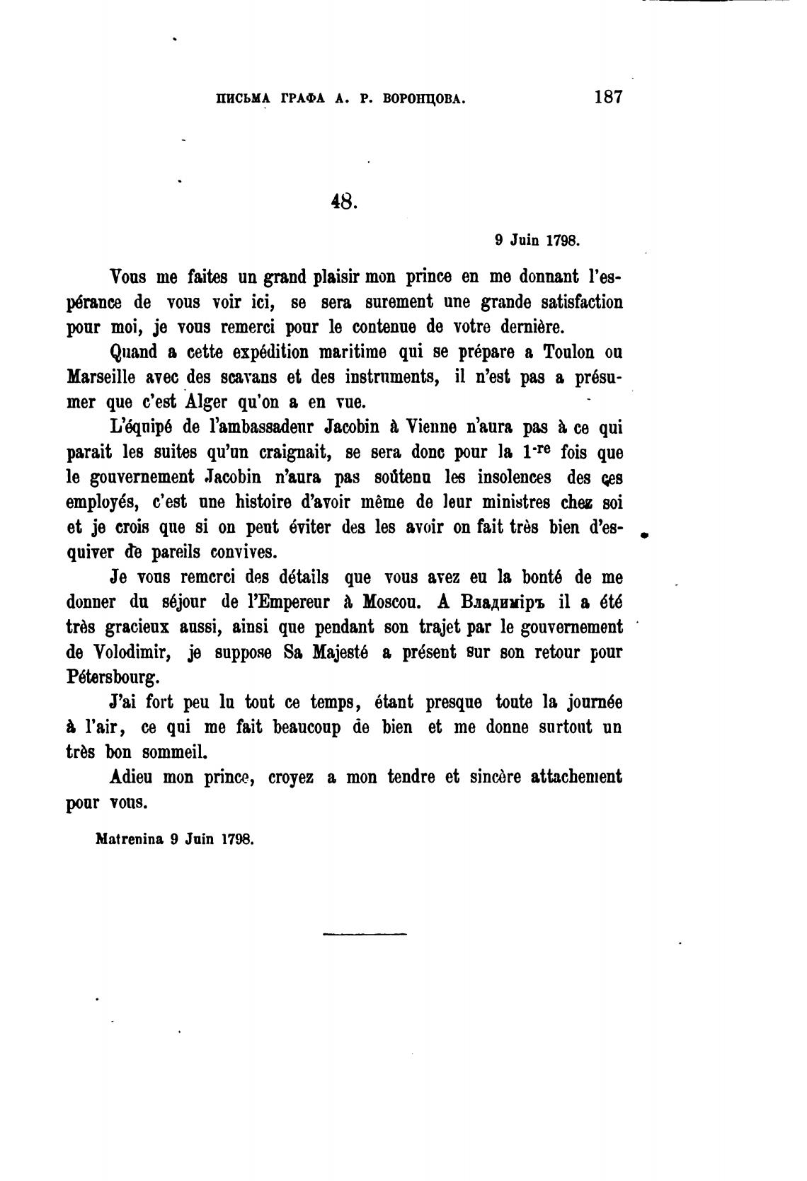 ПИСЬМА ГРАФА А. Р. ВОРОНЦОВА.