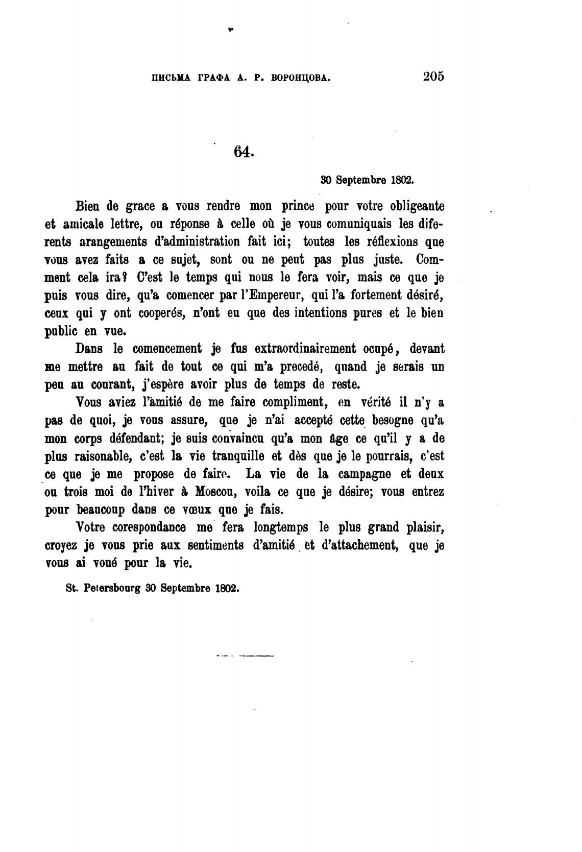 ПИСЬМД ГРАФА А. Р. ВОРОНЦОВА.
