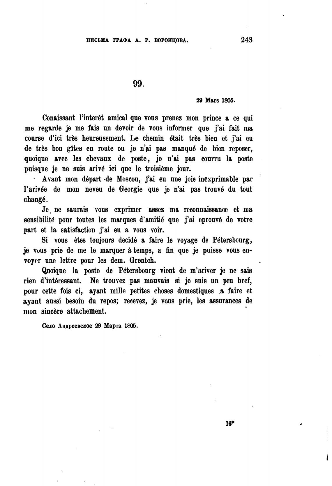ПИСЬМА ГРАФА А. Р. ВОРОНЦОВА.