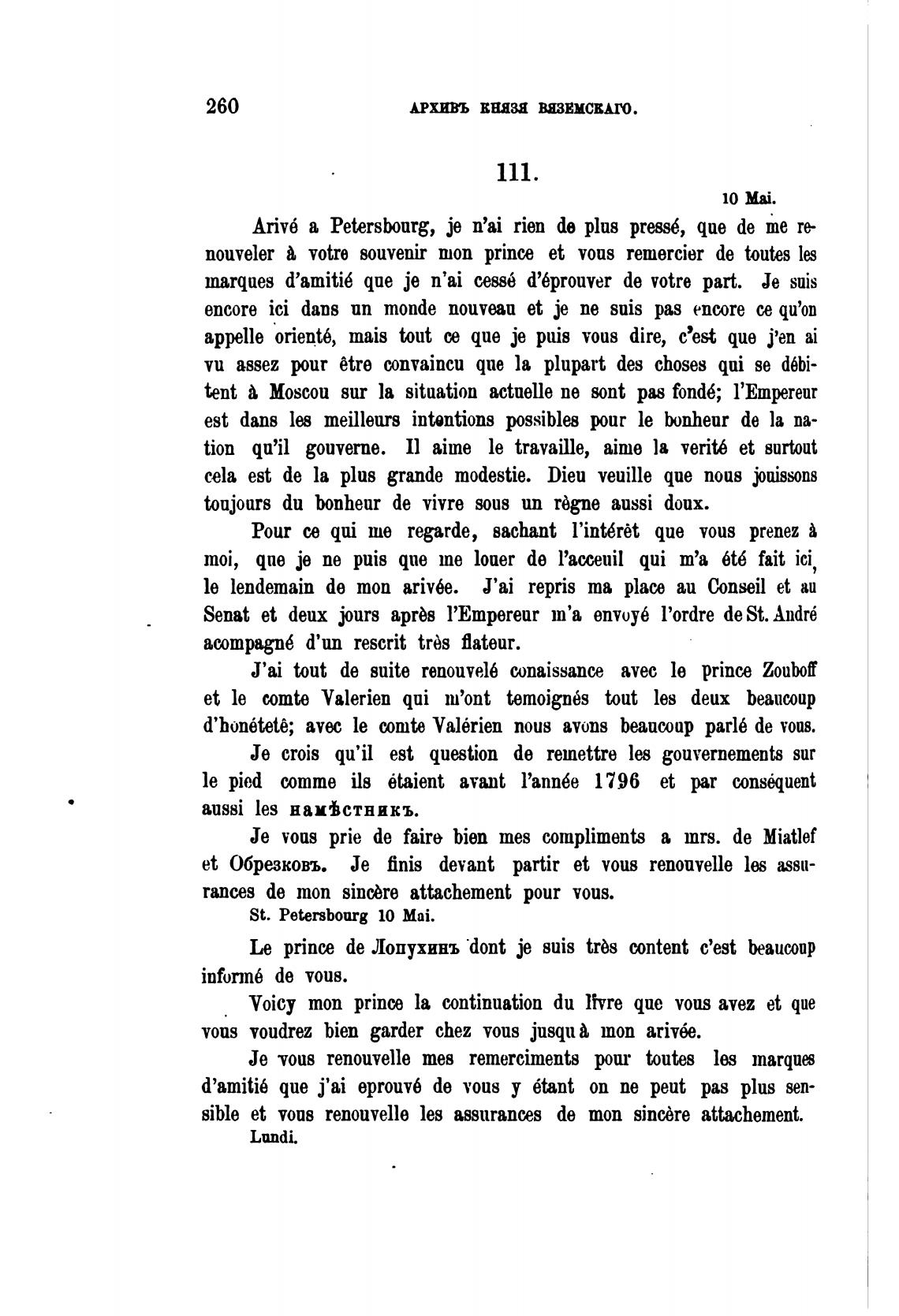 Ariv6 а Pet.ersbourg, је n'ai rien de plus press6, que de те re