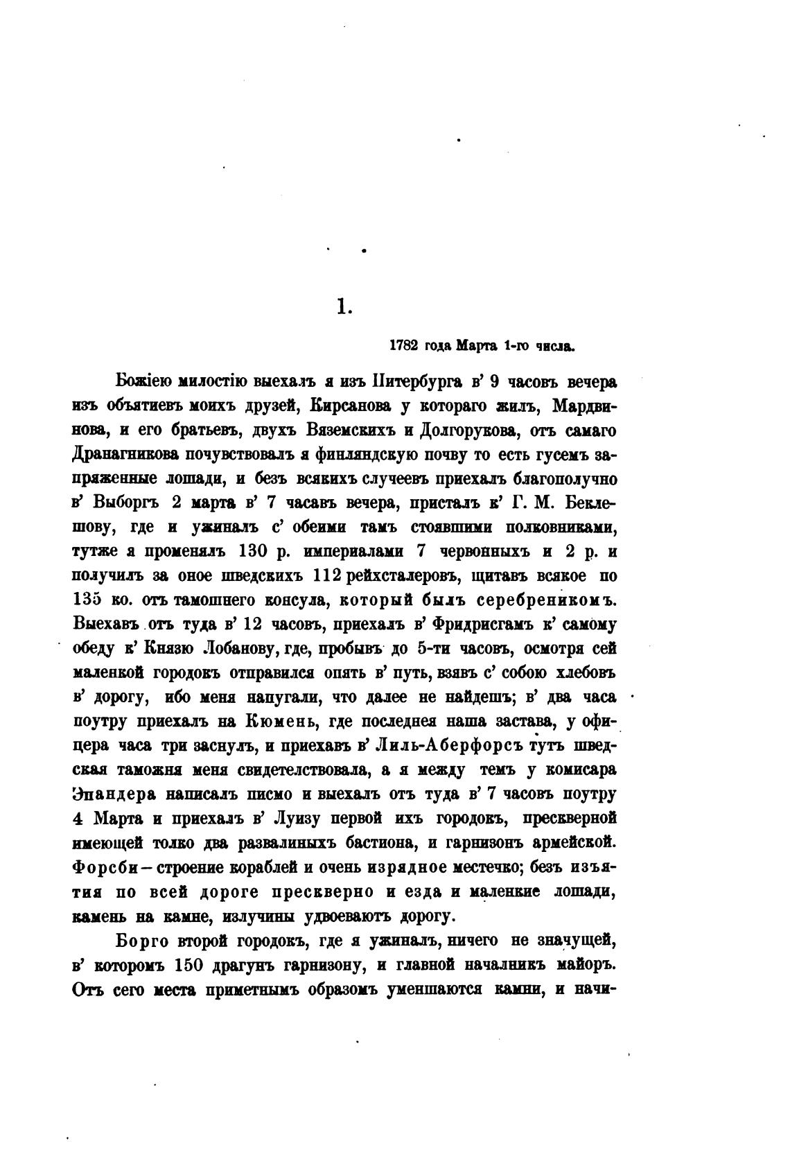 Выехавъ отъ туда в' 12 часовъ, приехал в' Фридрисгамъ Е' имому