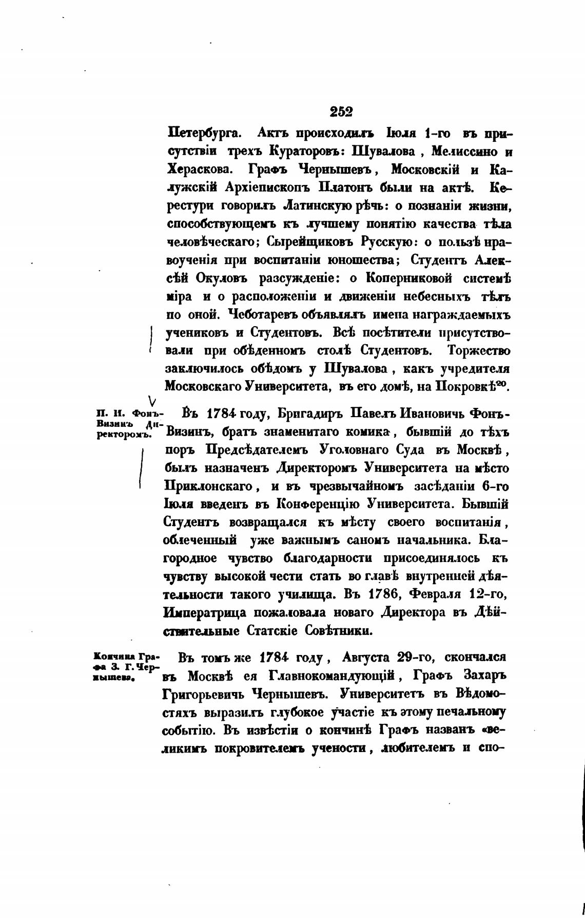 копни Гра- Въ томъже 1784 году , Августа 29-го, скончался