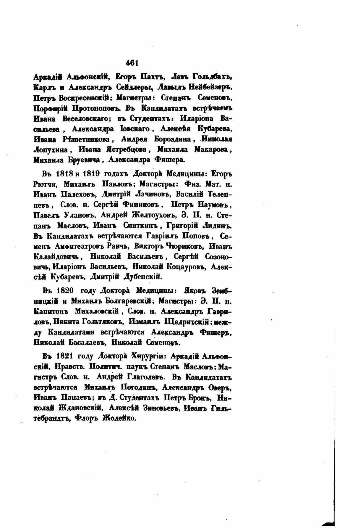 Въ 1818 и 1819 годахъ Докторћ Медицины: Егорь