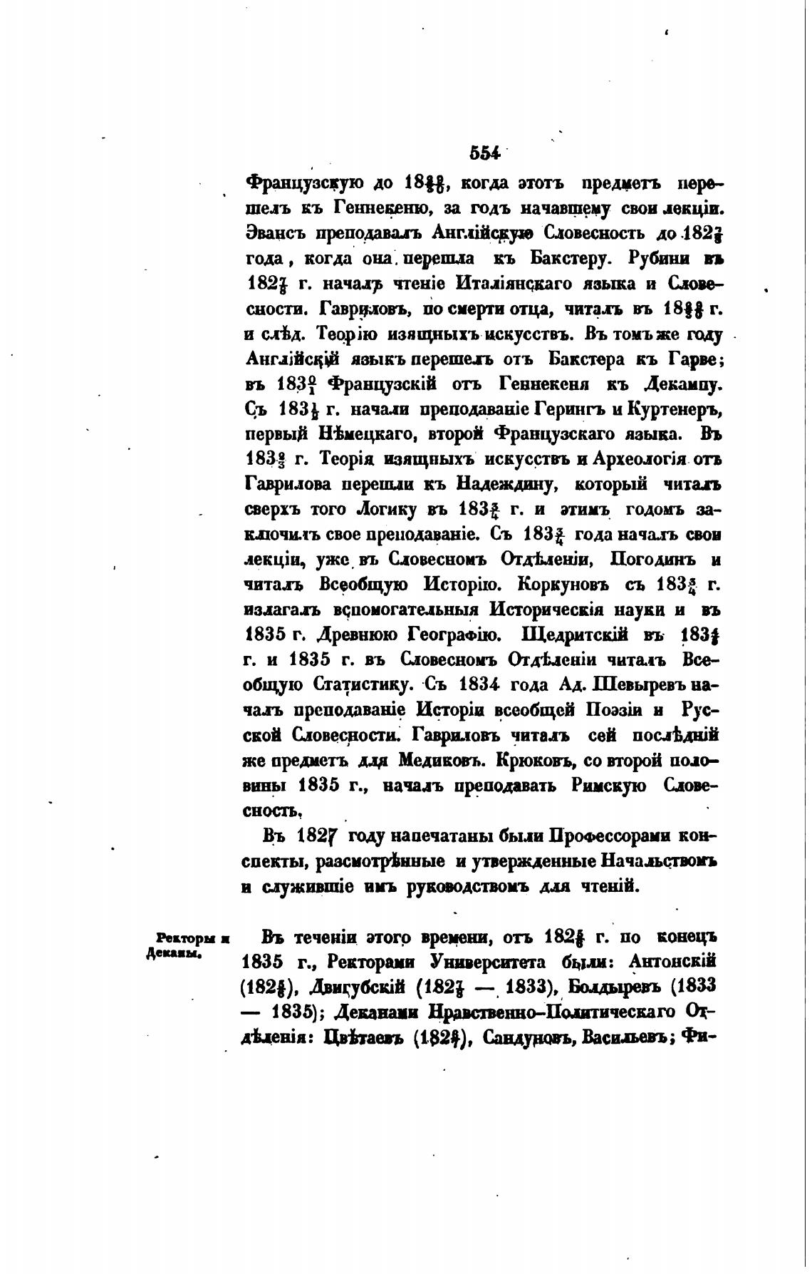 1835 г., Ректорами были:
