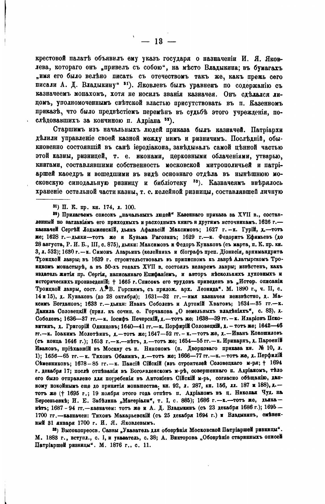 сковскую синодальную ризницу и 33). Казначеямъ вв±рялось