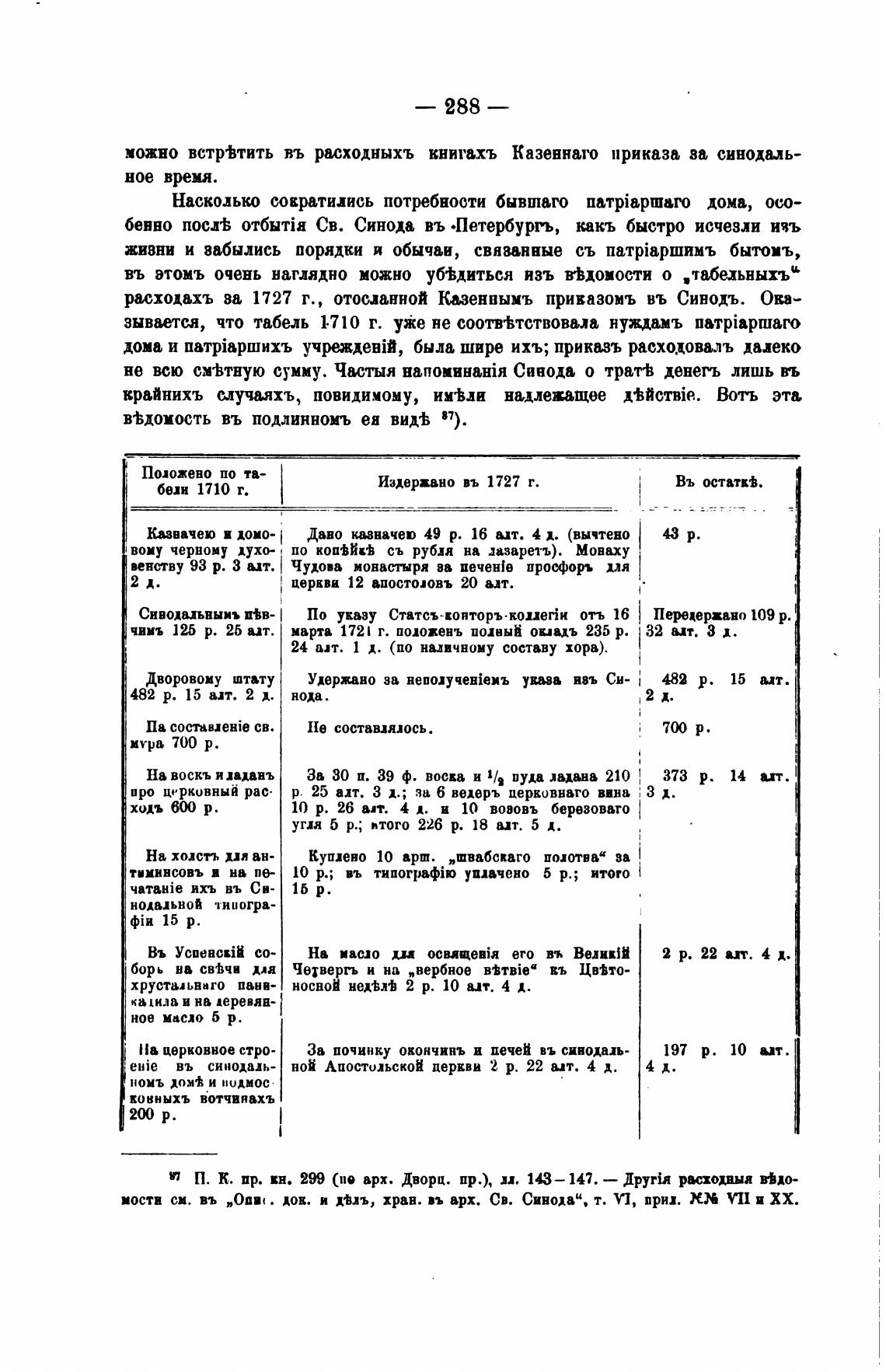 расходахъ ва 1727 г., отосланной Казенвымъ привазомъ въ Синодъ. Ова-