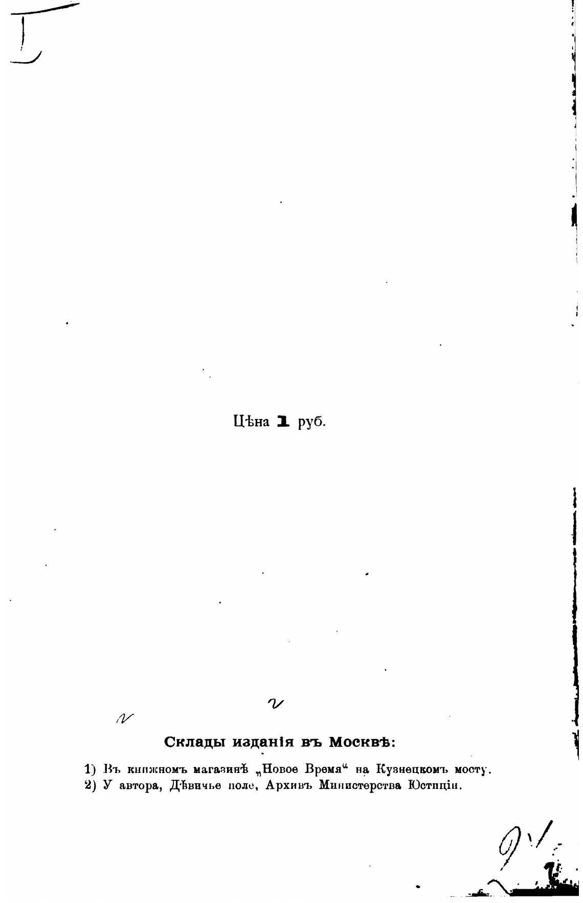1) Въ кнпжномъ магазин% „Новое Время“ на Кузнецком, мосту.