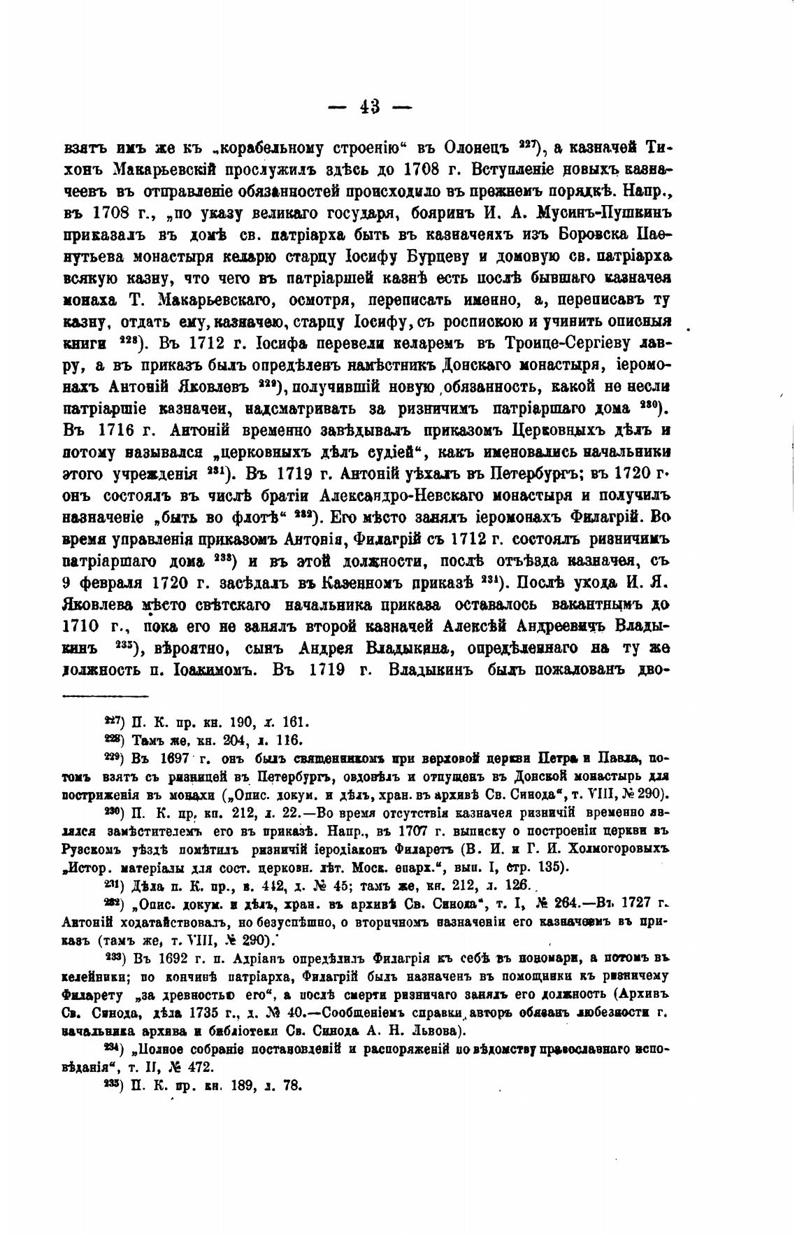 229) Въ 1697 г. овь биъ свят.енаихомъ три верховой дерти Петра в Павла, по-