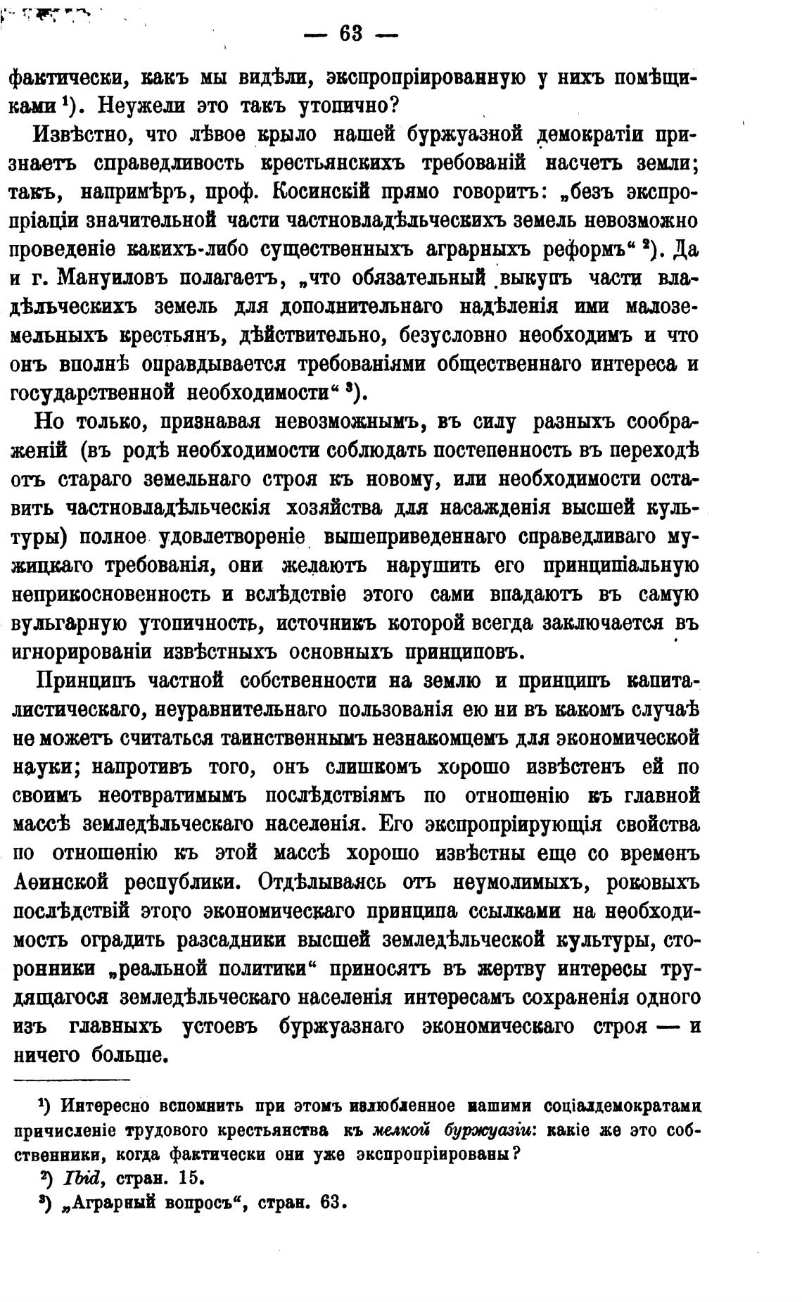 3) „Аграрный вопросъ“, стран. 63.