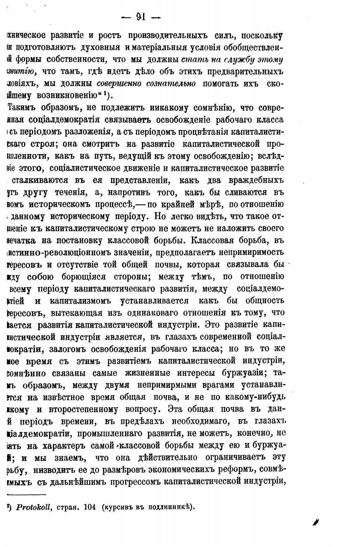 1) Protokoll, стран. 104 (курсивь въ подлинник•Ь).