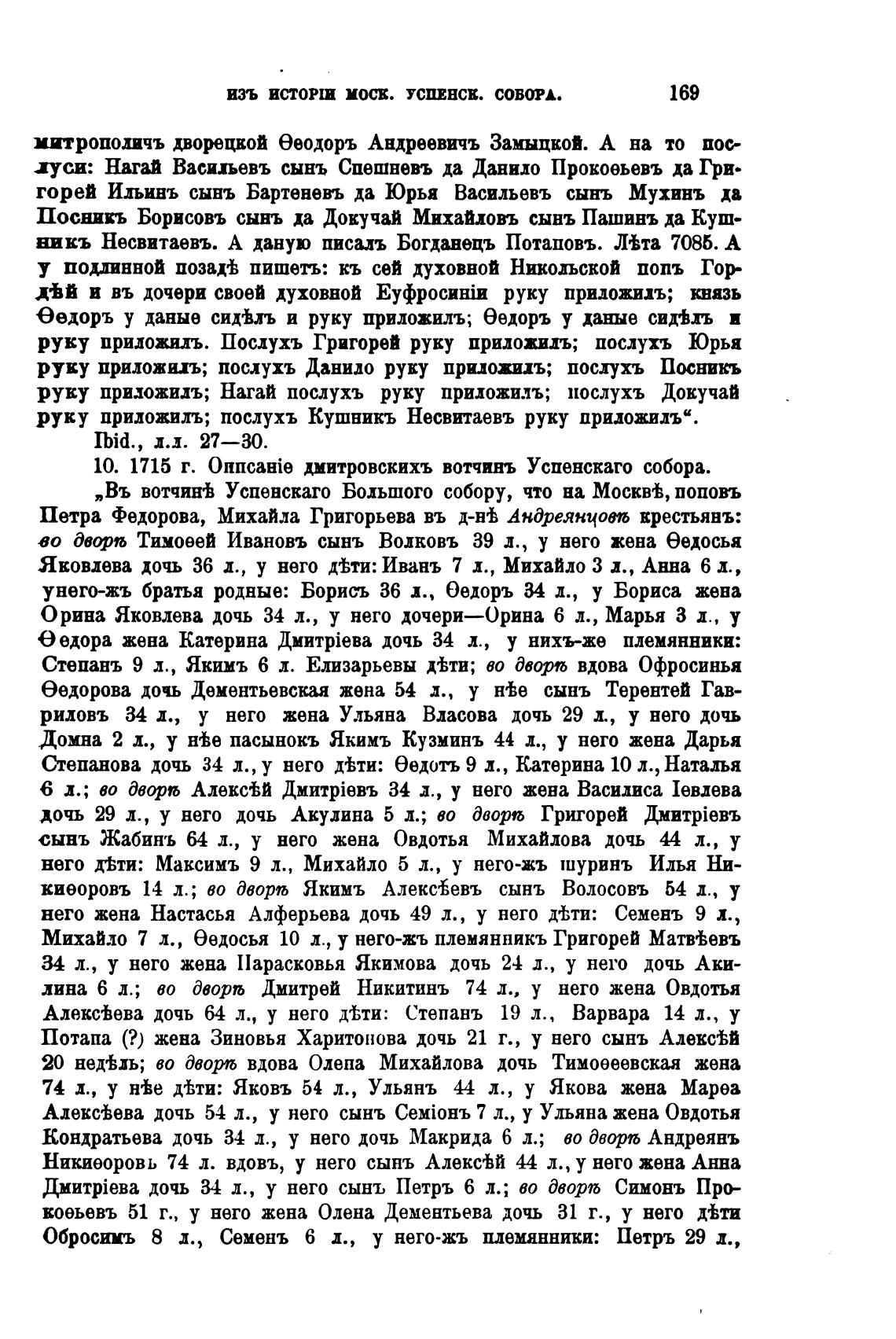 10. 1715 г. дмитровскихъ вотчинъ Успенскаго собора.