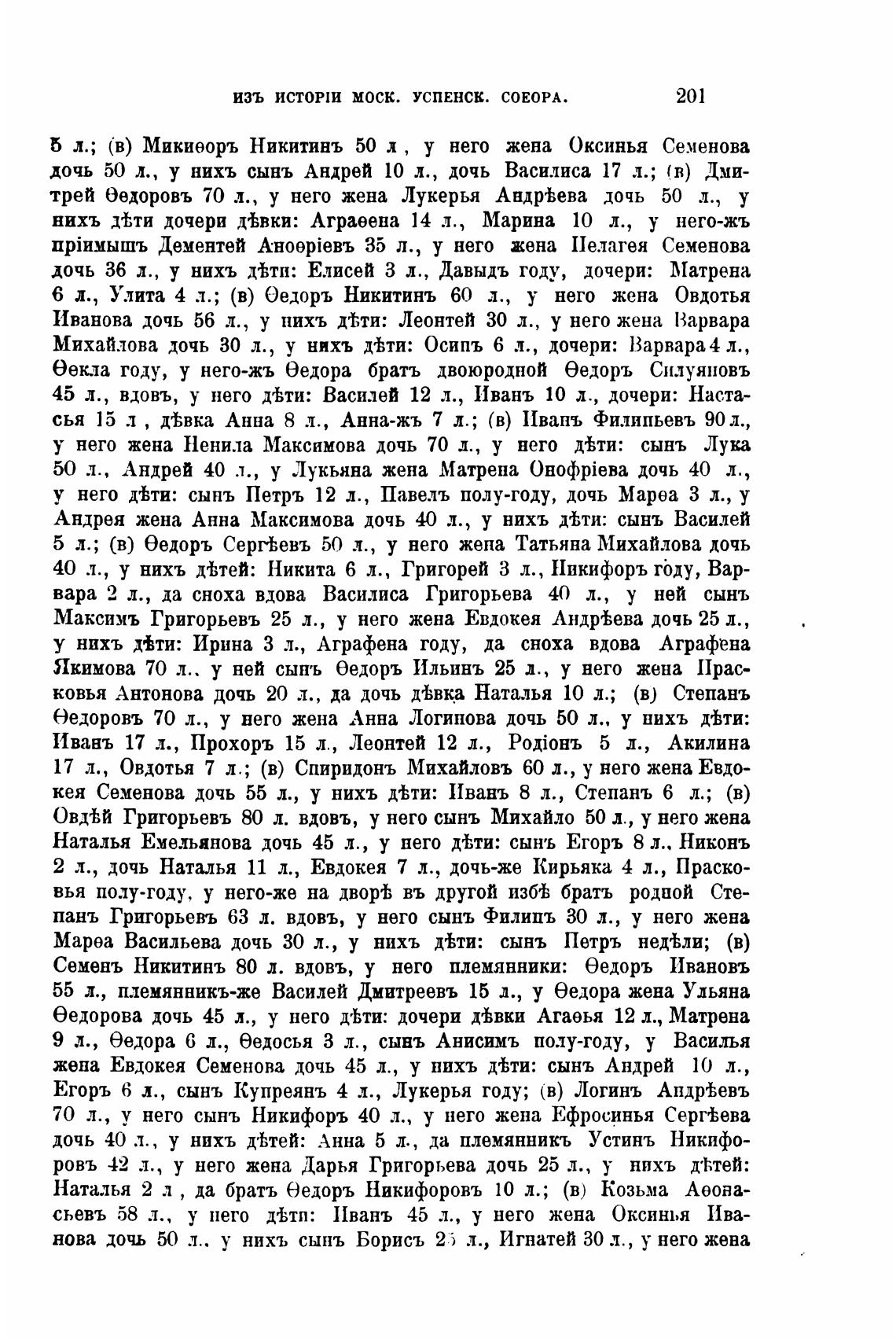 б л.; (в) Микиеоръ Никитинъ 50 л , у него жена Оксинья Семенова
