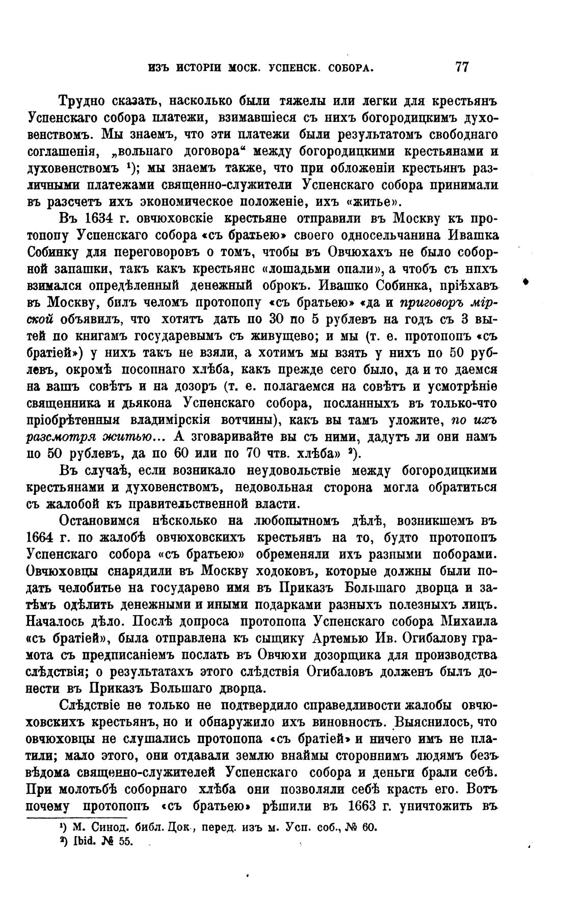 1664 г. по жалоб овчюховскихъ крестьянъ на то, будто протопопъ