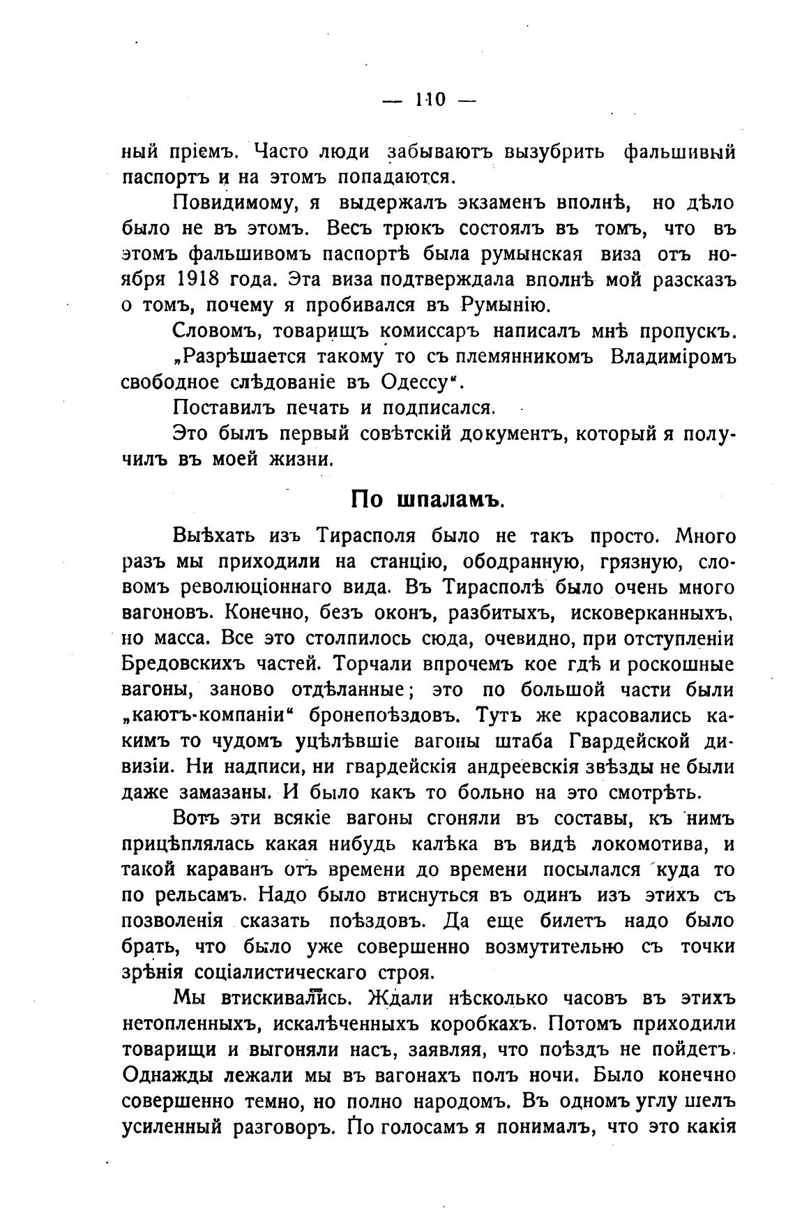 Словомъ, товарищъ комиссаръ написалъ мн•В пропускъ.